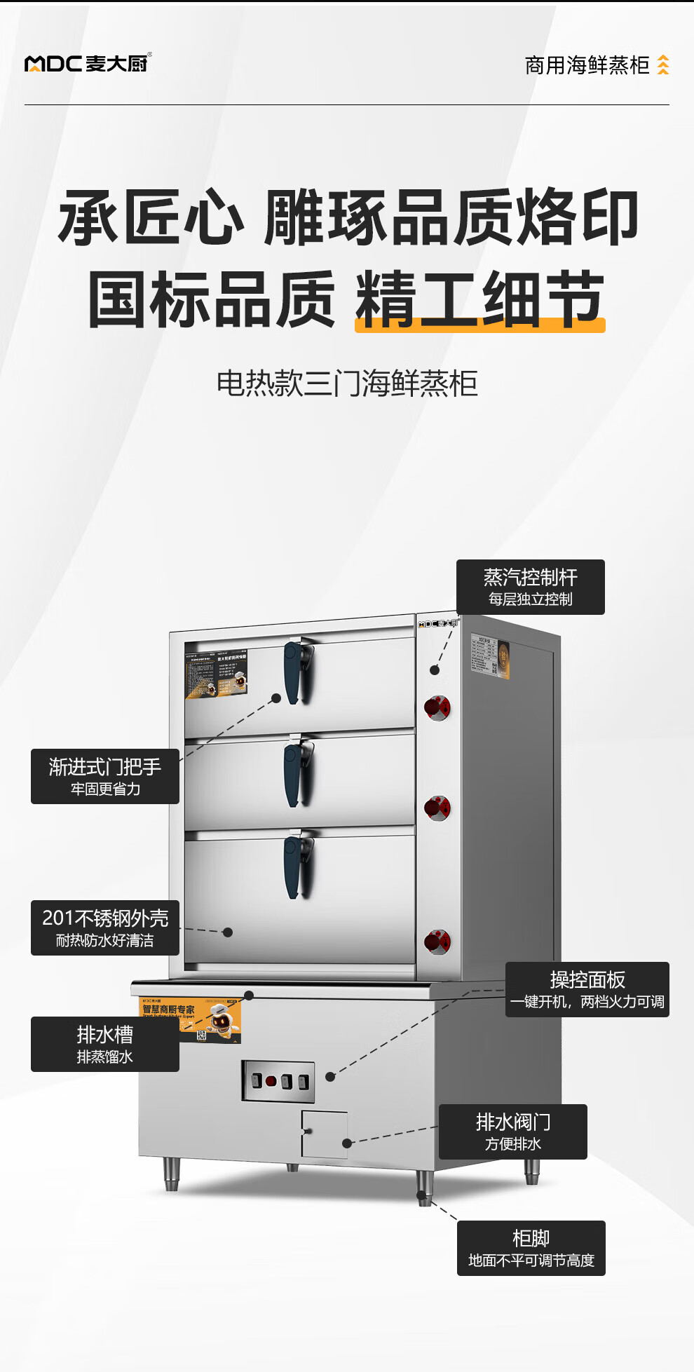 麦大厨商用蒸柜1200mm电热款三门海鲜蒸柜