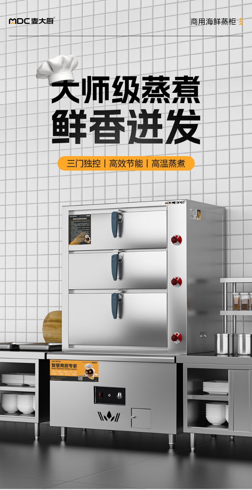 麦大厨商用蒸柜1000mm燃气款三门海鲜蒸柜