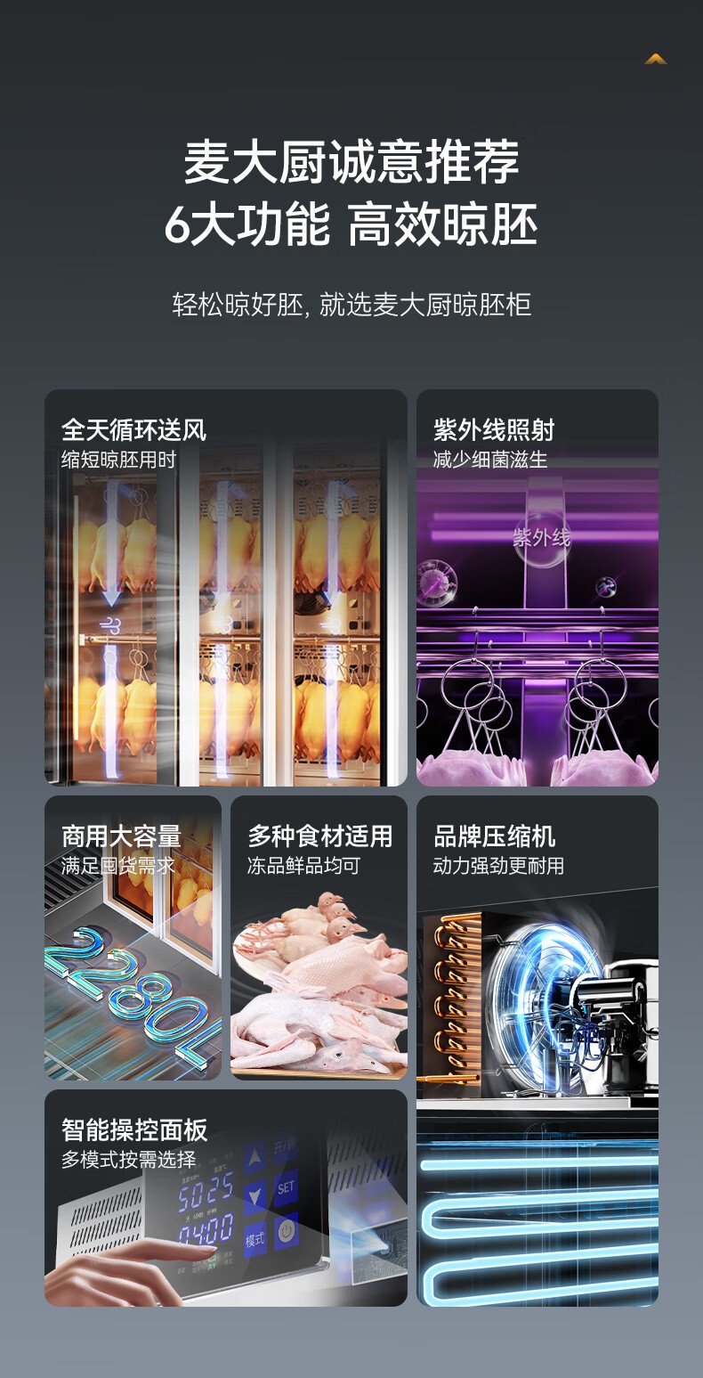 麦大厨旗舰款三门商用晾胚柜晾鸭风干柜