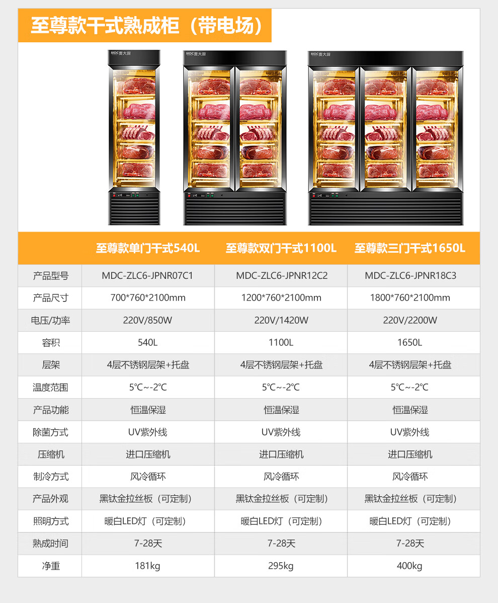 麦大厨豪华款800L双门冷藏干式熟成柜商用