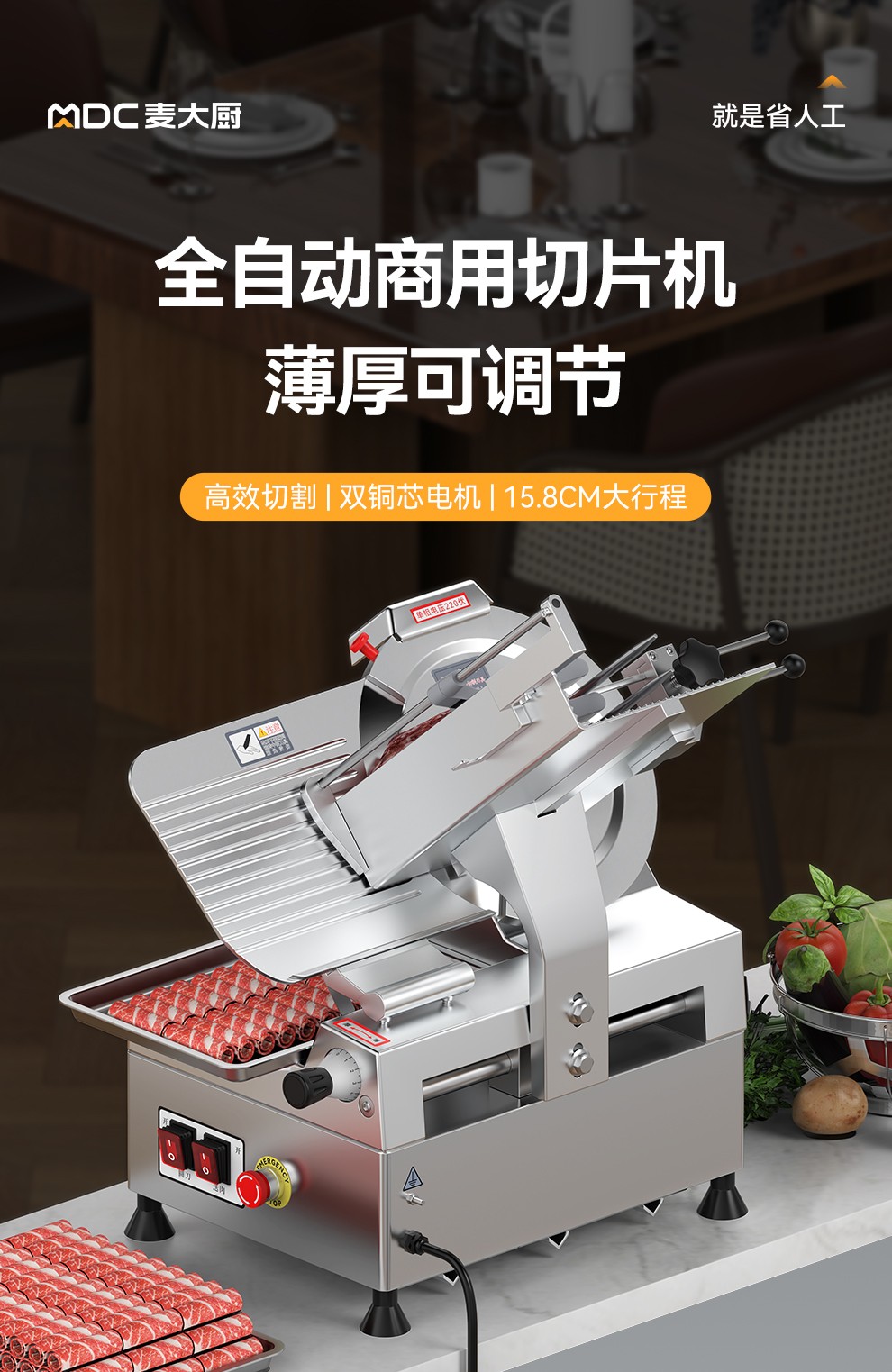 麦大厨切牛肉羊肉片专用12寸台式全自动商用切片机