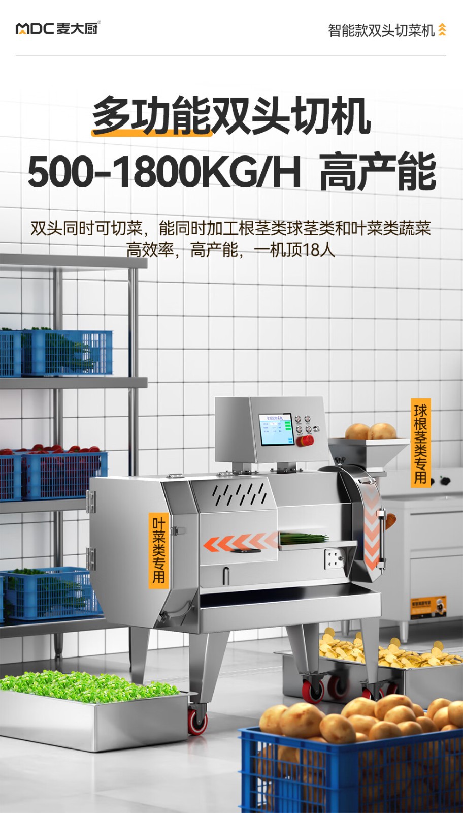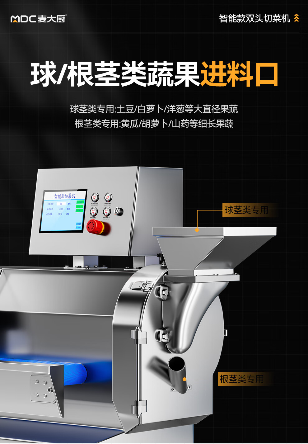 麦大厨商用切菜机多功能双头变频食堂厨房电动叶菜根茎切碎机