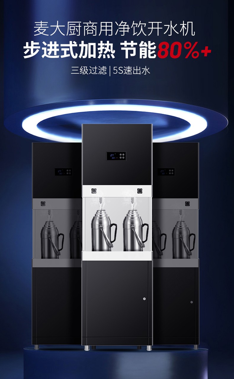 麦大厨步进式柜式三级过滤二开50L商用开水机