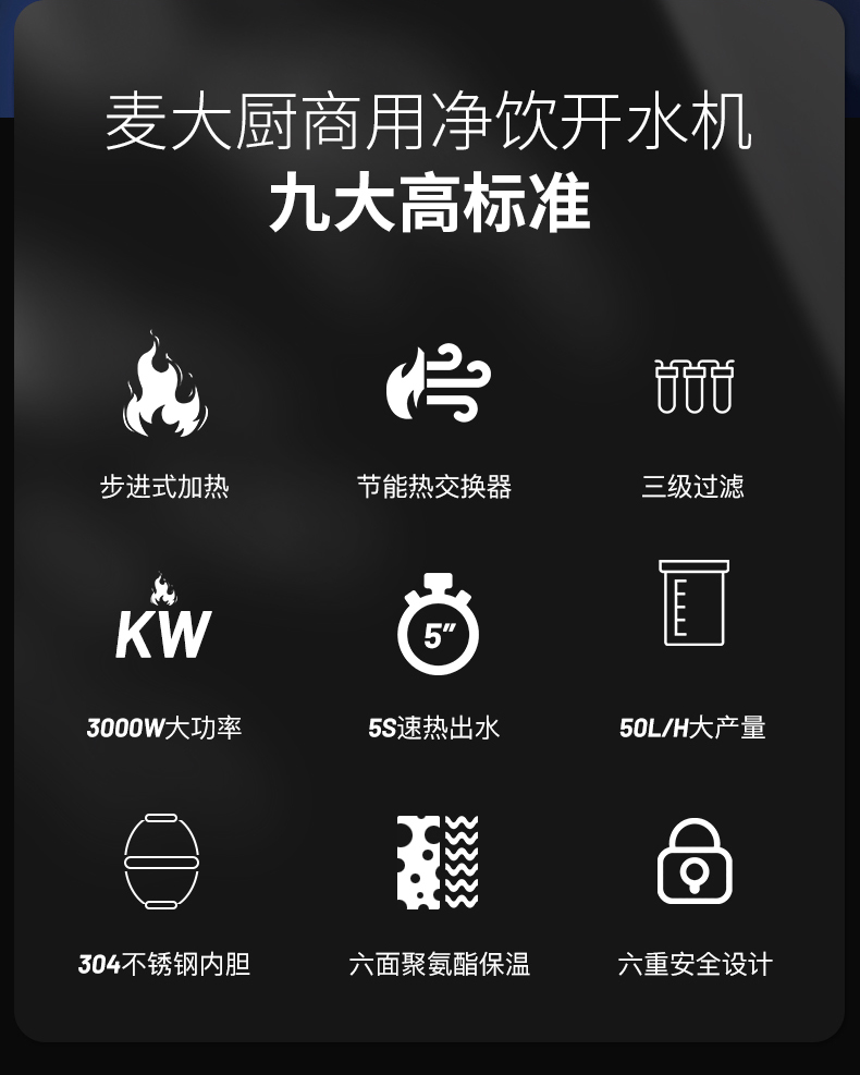 麦大厨步进式柜式三级过滤二开90L商用开水机