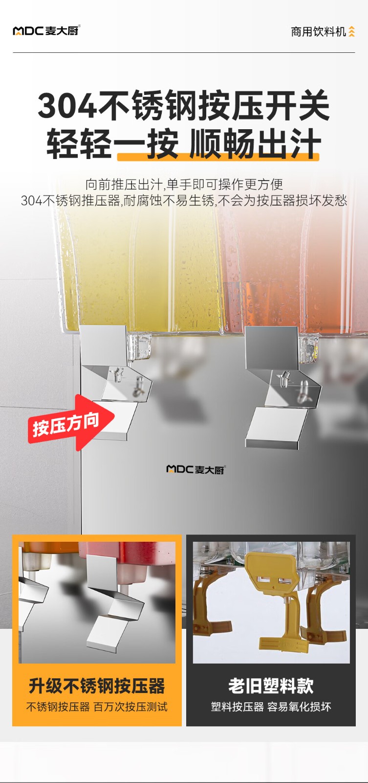 麦大厨220V标准款三缸单冷喷淋式饮料机商用450W