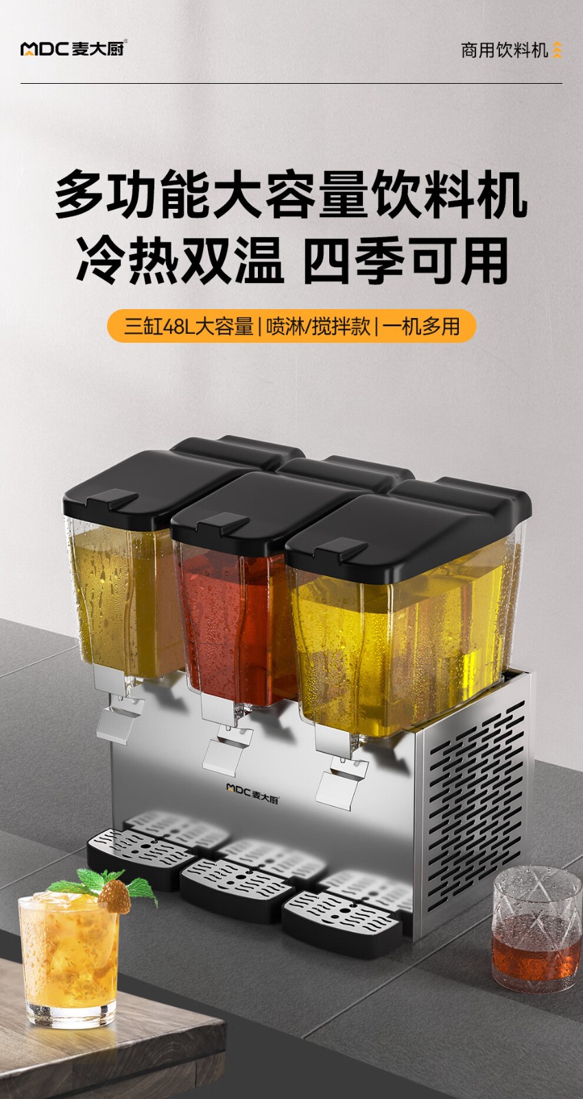麦大厨220V标准款三缸冷热搅拌式饮料机商用450W