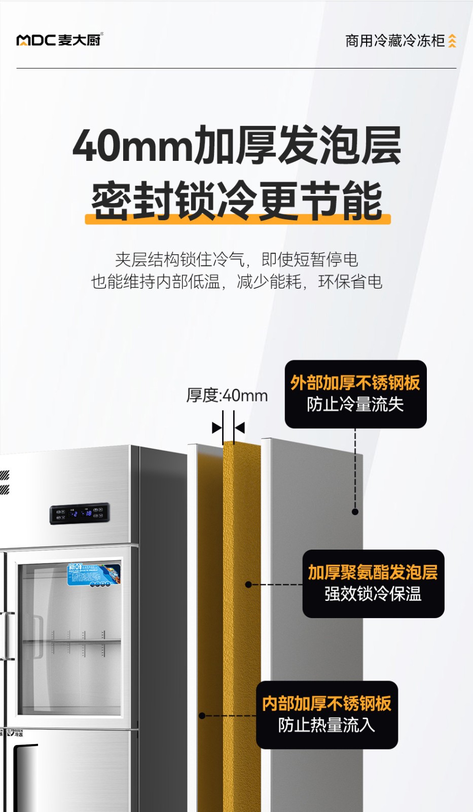 麦大厨标准款四门直冷上玻璃立式双温冰柜