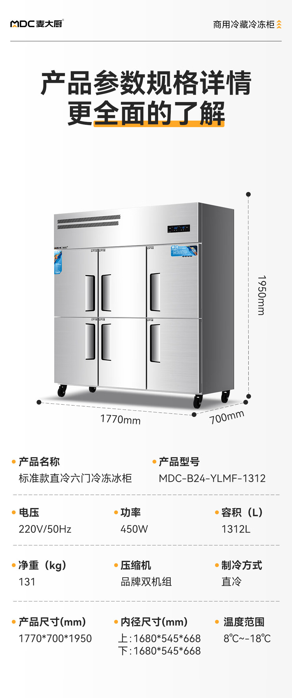 - 更多MDC商用四六门冰柜规格咨询在线客服