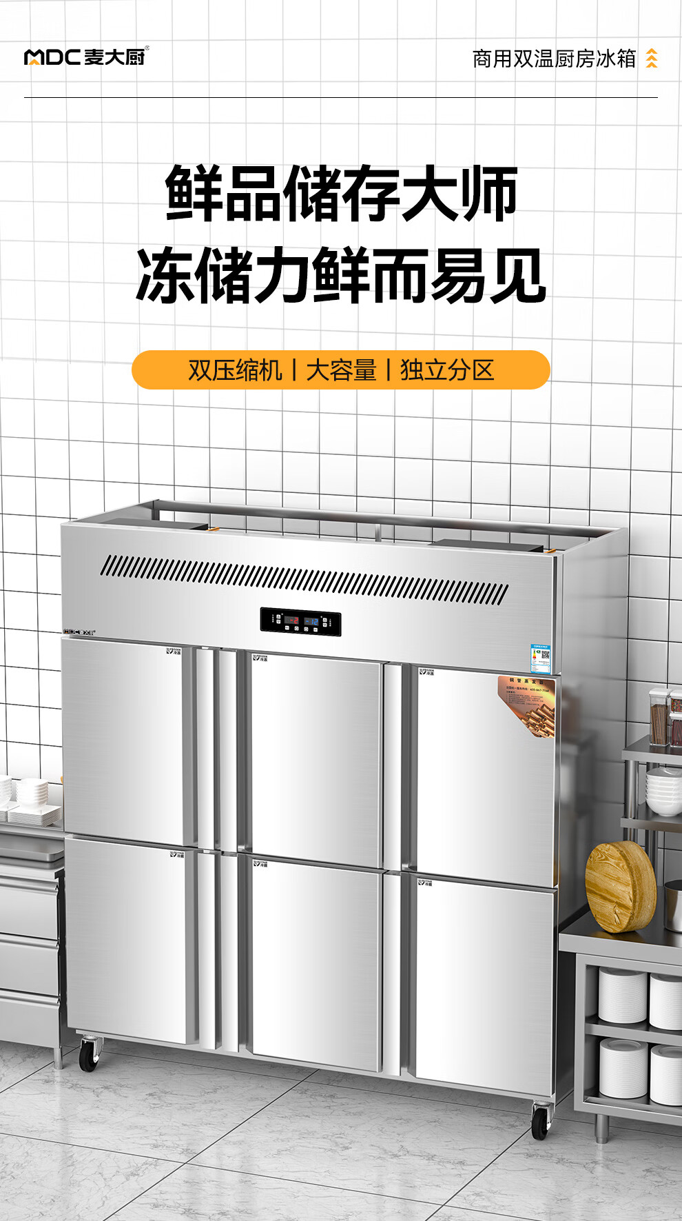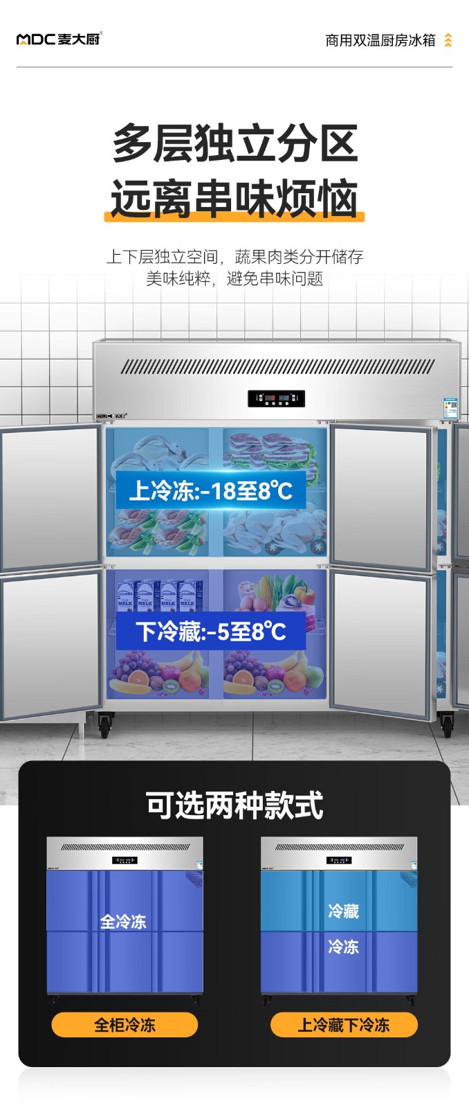 麦大厨豪华款六门直冷立式双温冰柜