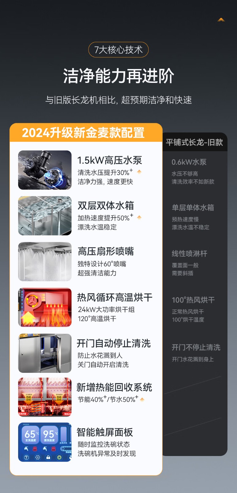 麦大厨金麦款平放式触屏热回收3.2m三缸双喷洗碗机