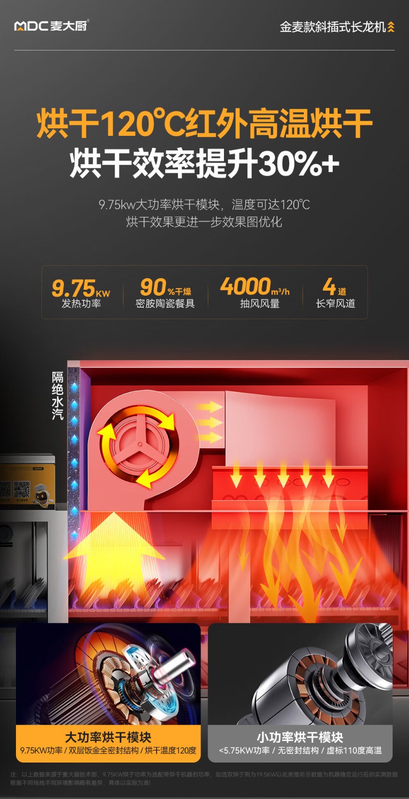 麦大厨金麦款斜插式触屏热回收3.75m三缸双喷洗碗机