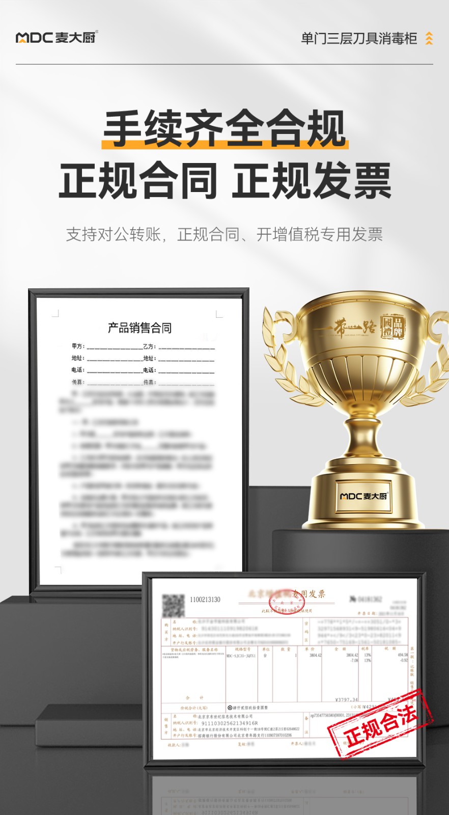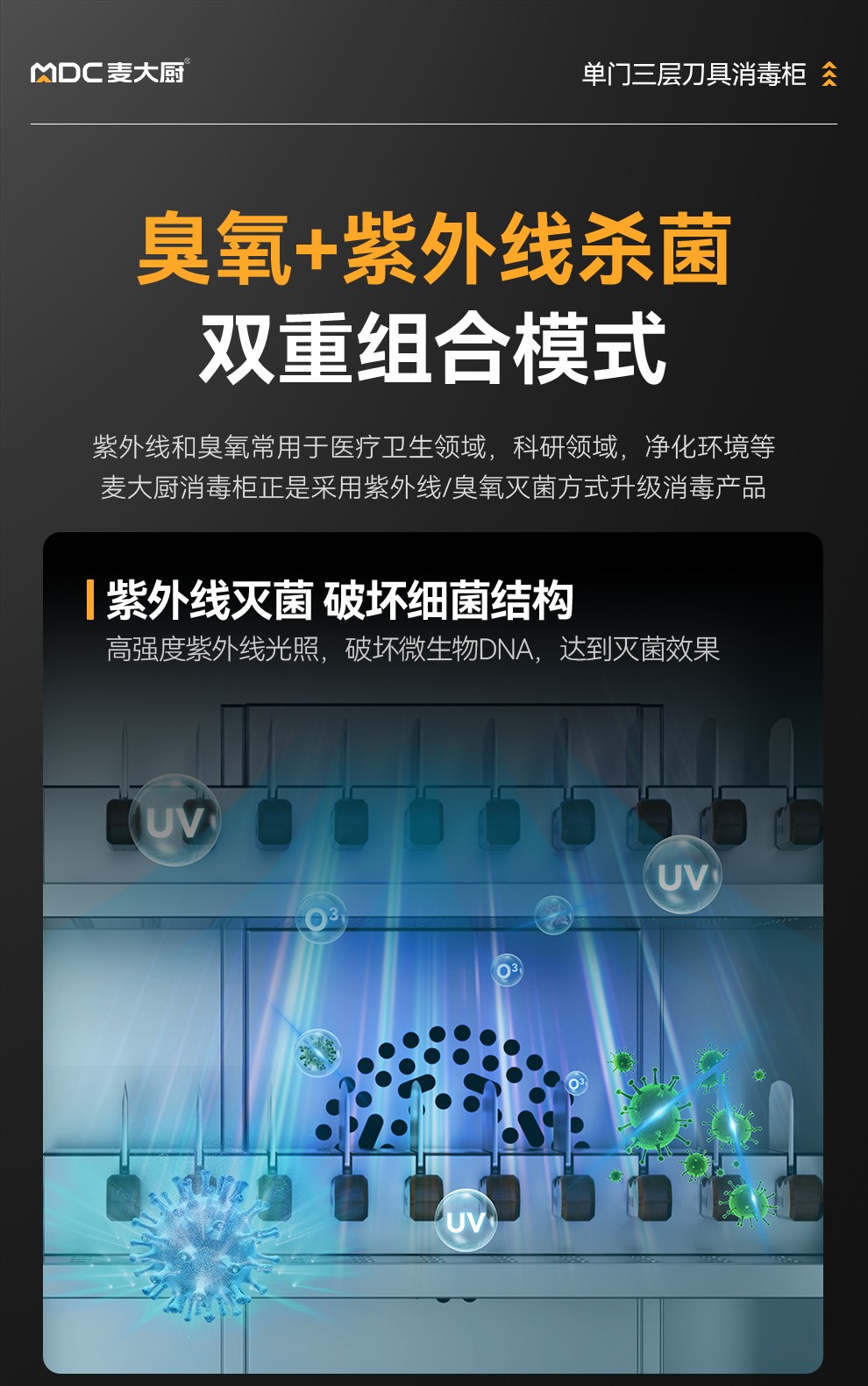 麦大厨智能款单门三层臭氧紫外线热风循环消毒柜