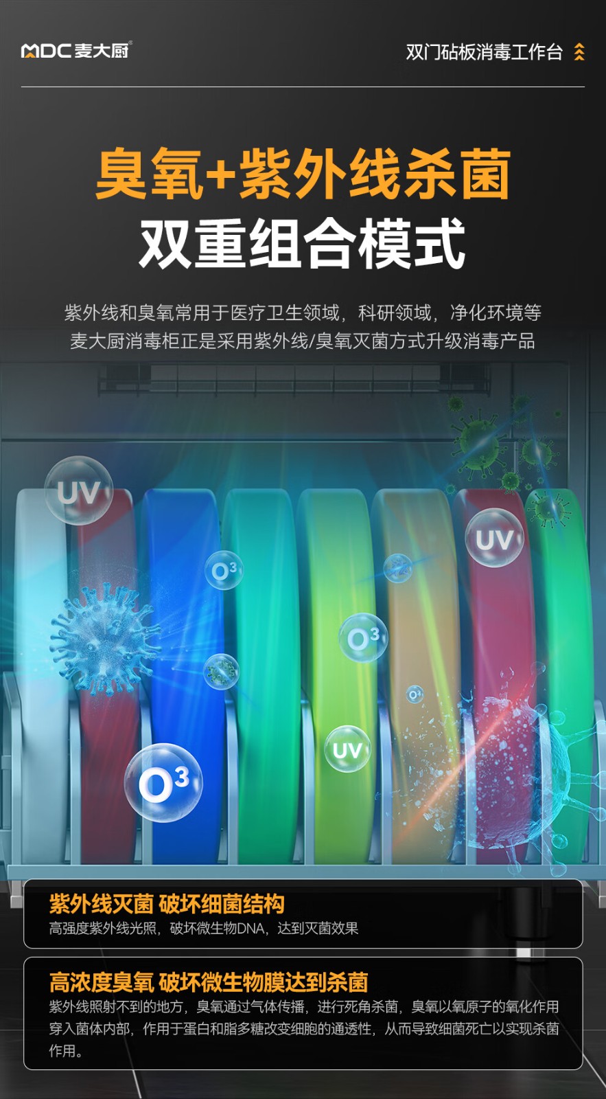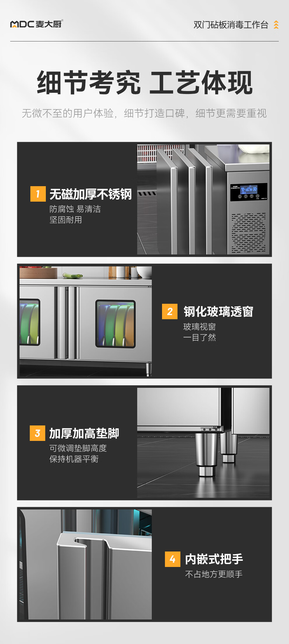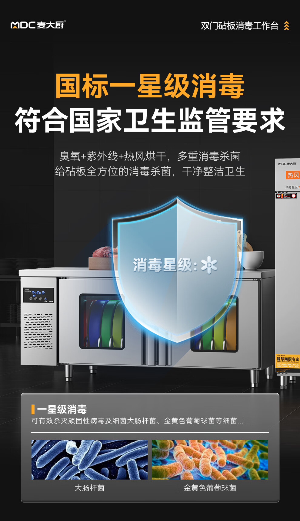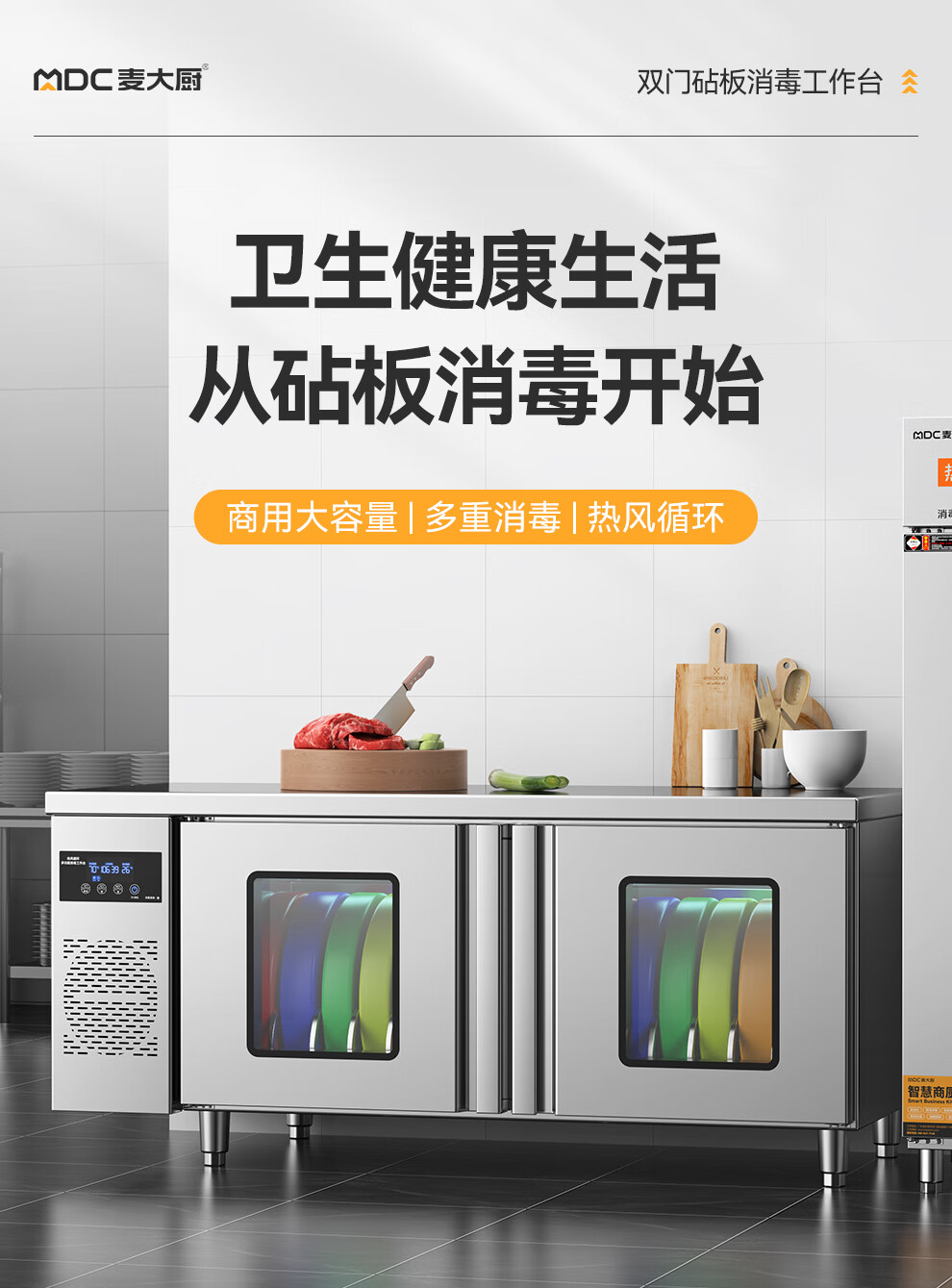 麦大厨1.8m双门砧板组合臭氧紫外线热风循环消毒工作台