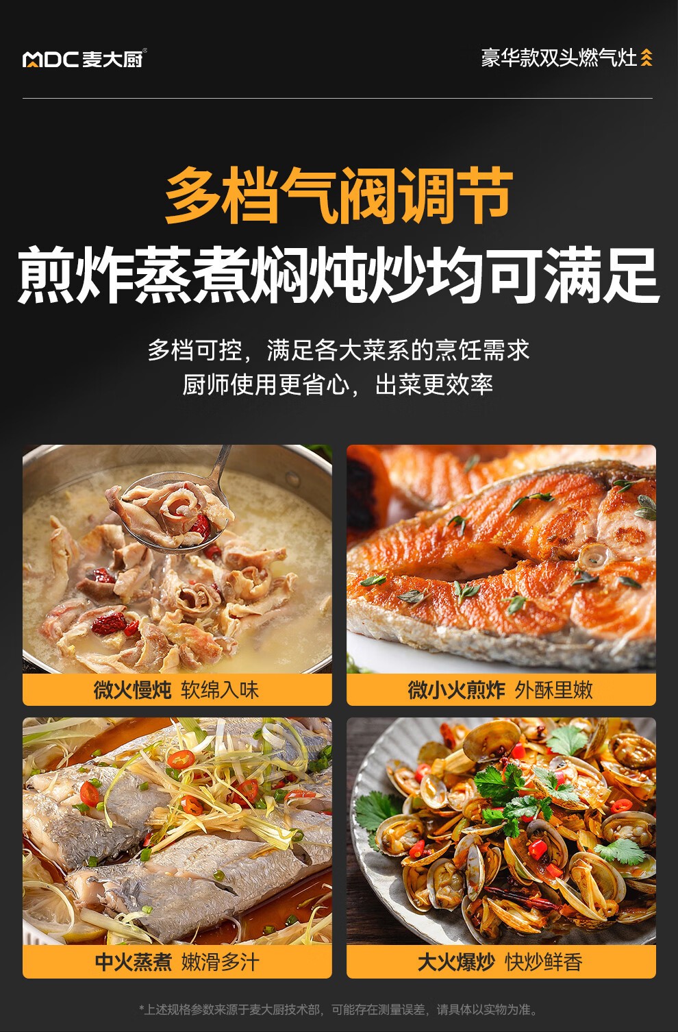 麦大厨燃气猛火大锅灶豪华款燃气双头大炒炉600
