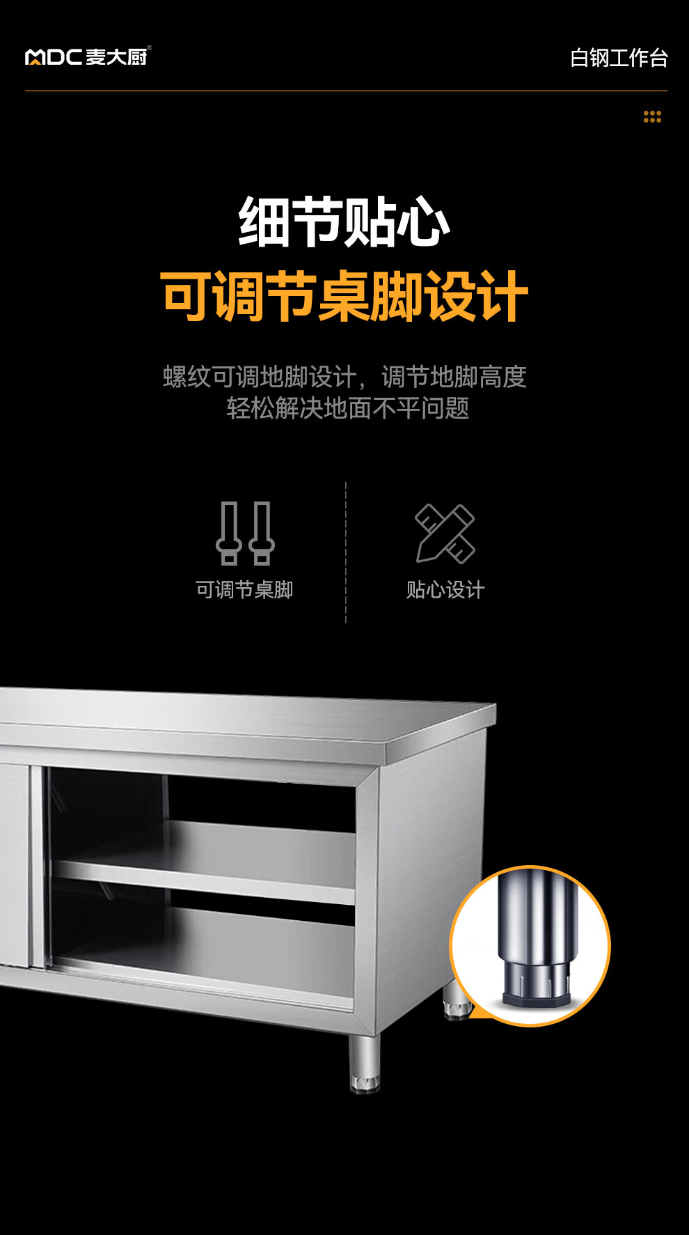 麦大厨2.0m升级款不锈钢工作台双通工作台带靠背