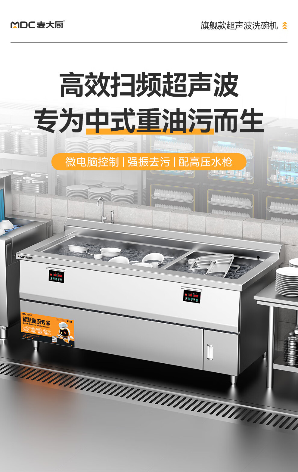麦大厨旗舰款1.8米双池超声波商用洗碗机