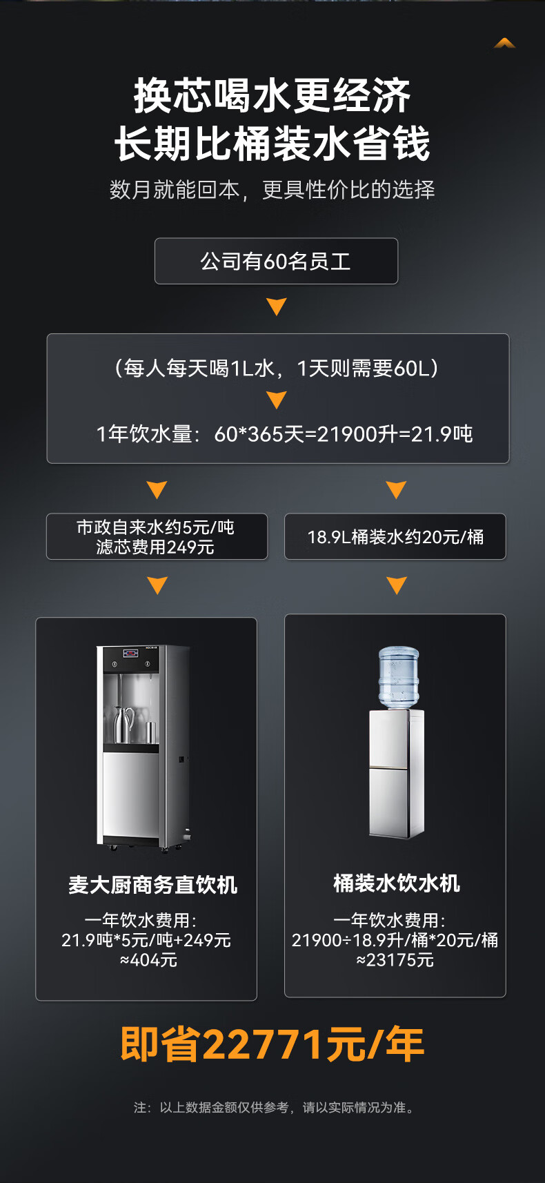 麦大厨2KW高背龙头饮水机一开一温快接五级超滤直饮机