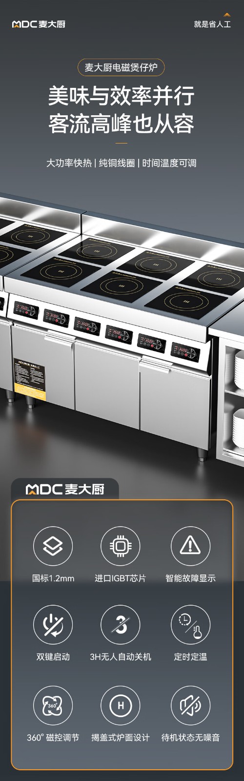 麦大厨商用多头电磁炉旗舰款六头柜式煲仔炉3.5KW