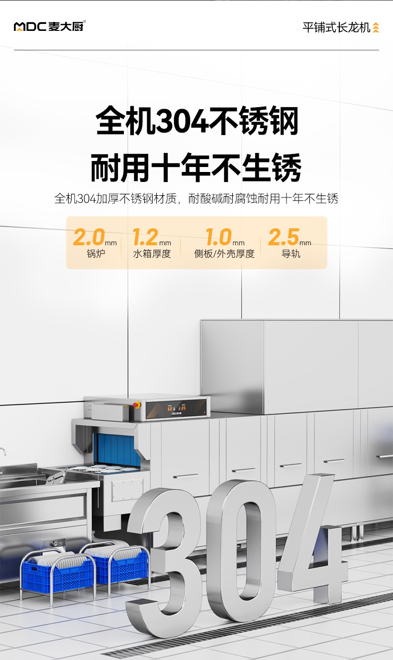 麦大厨5.7m豪华款平放式双缸双喷淋双烘干商用企业洗碗机