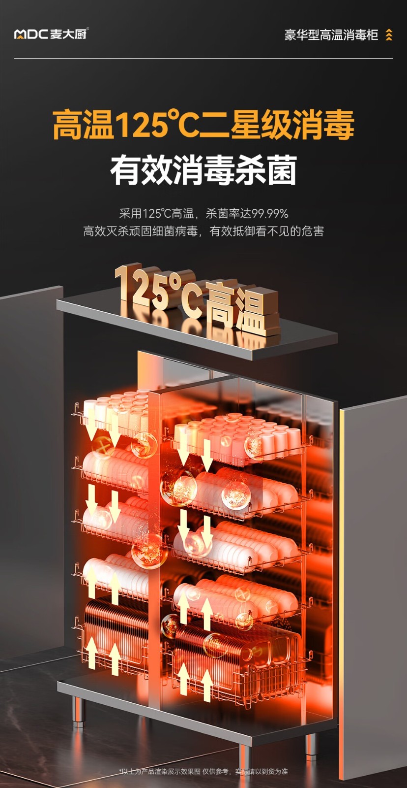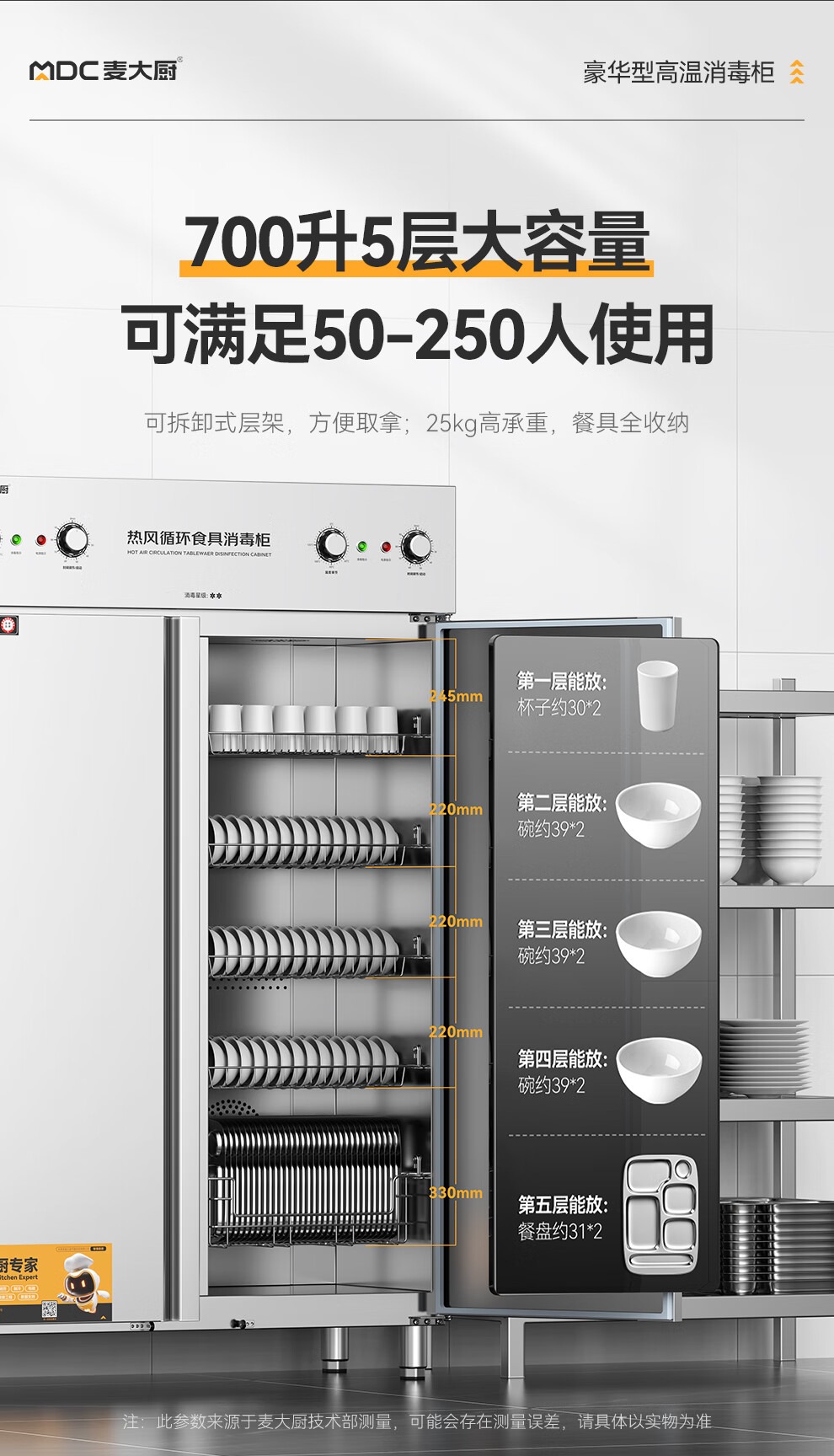 麦大厨豪华旋钮型双门双控5层热风循环高温消毒柜1870W