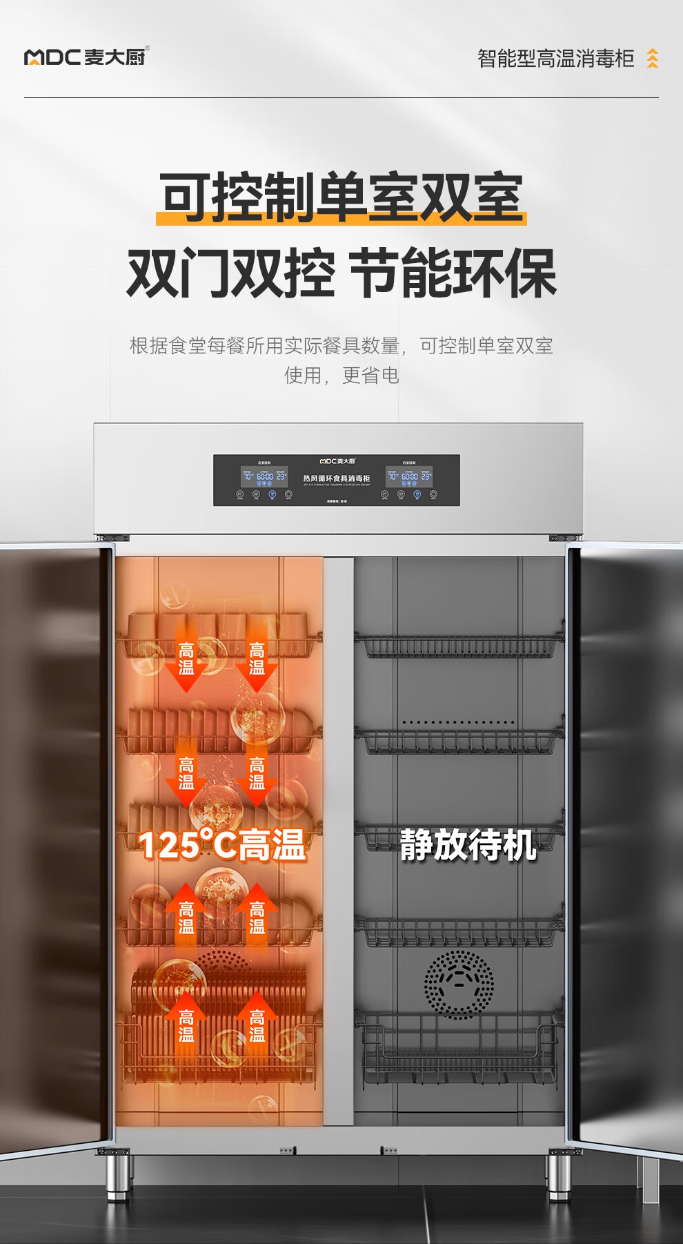 麦大厨智能电脑型双门双控5层热风循环高温消毒柜1870W