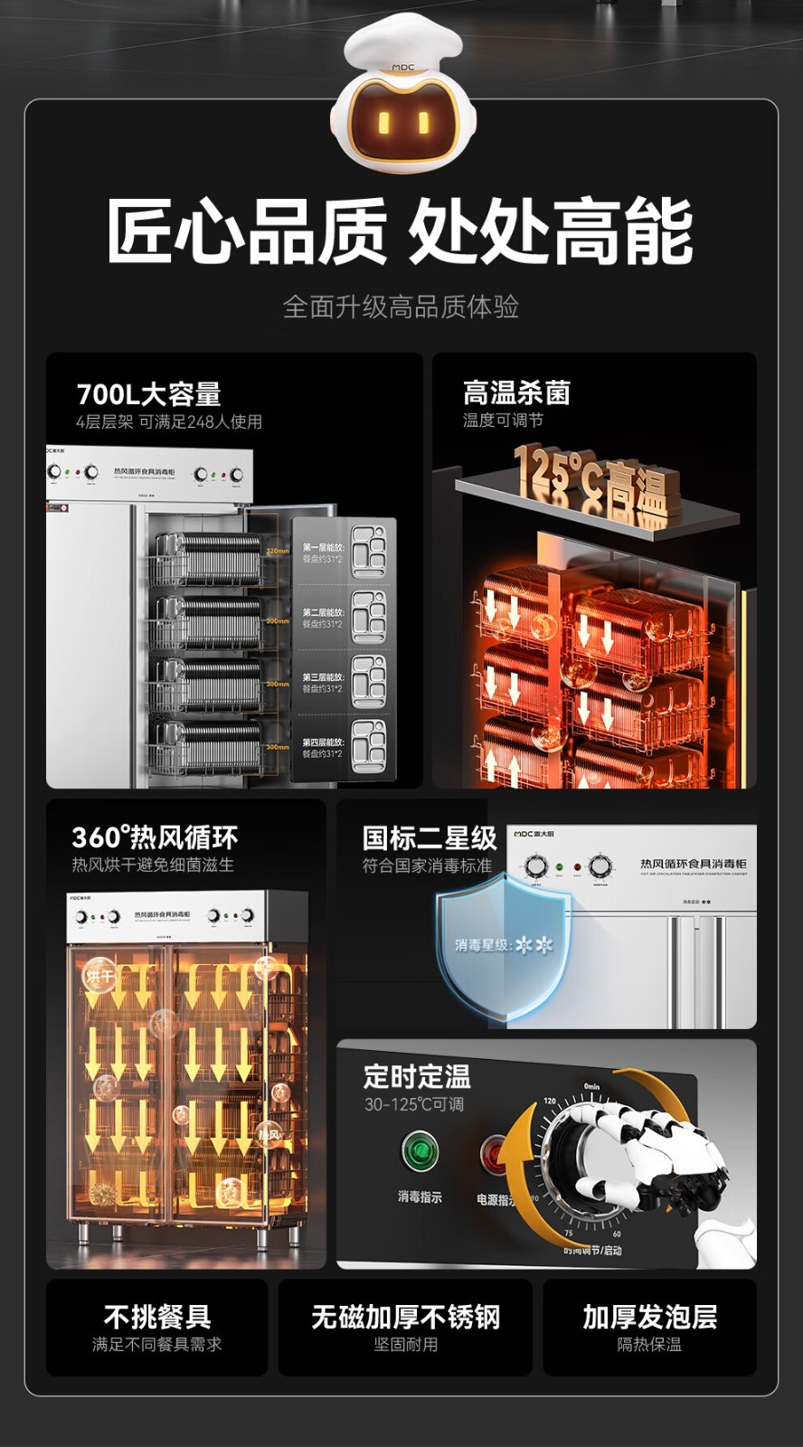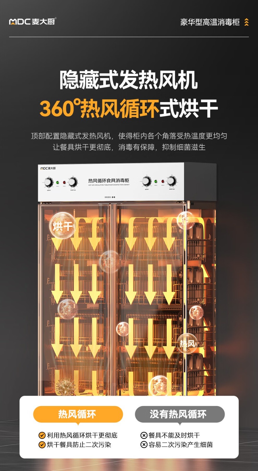 麦大厨豪华旋钮型双门双控4层热风循环高温消毒柜1870W