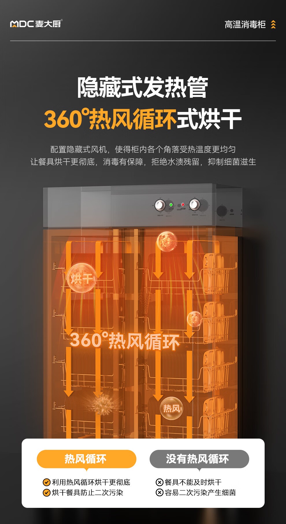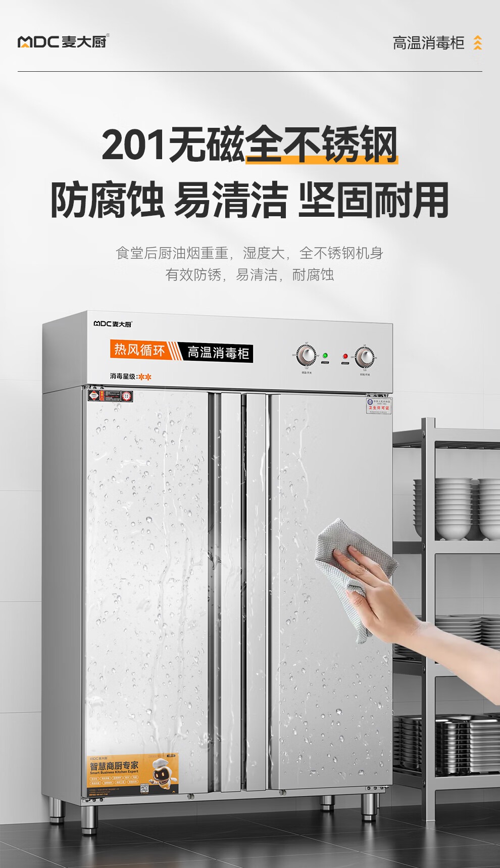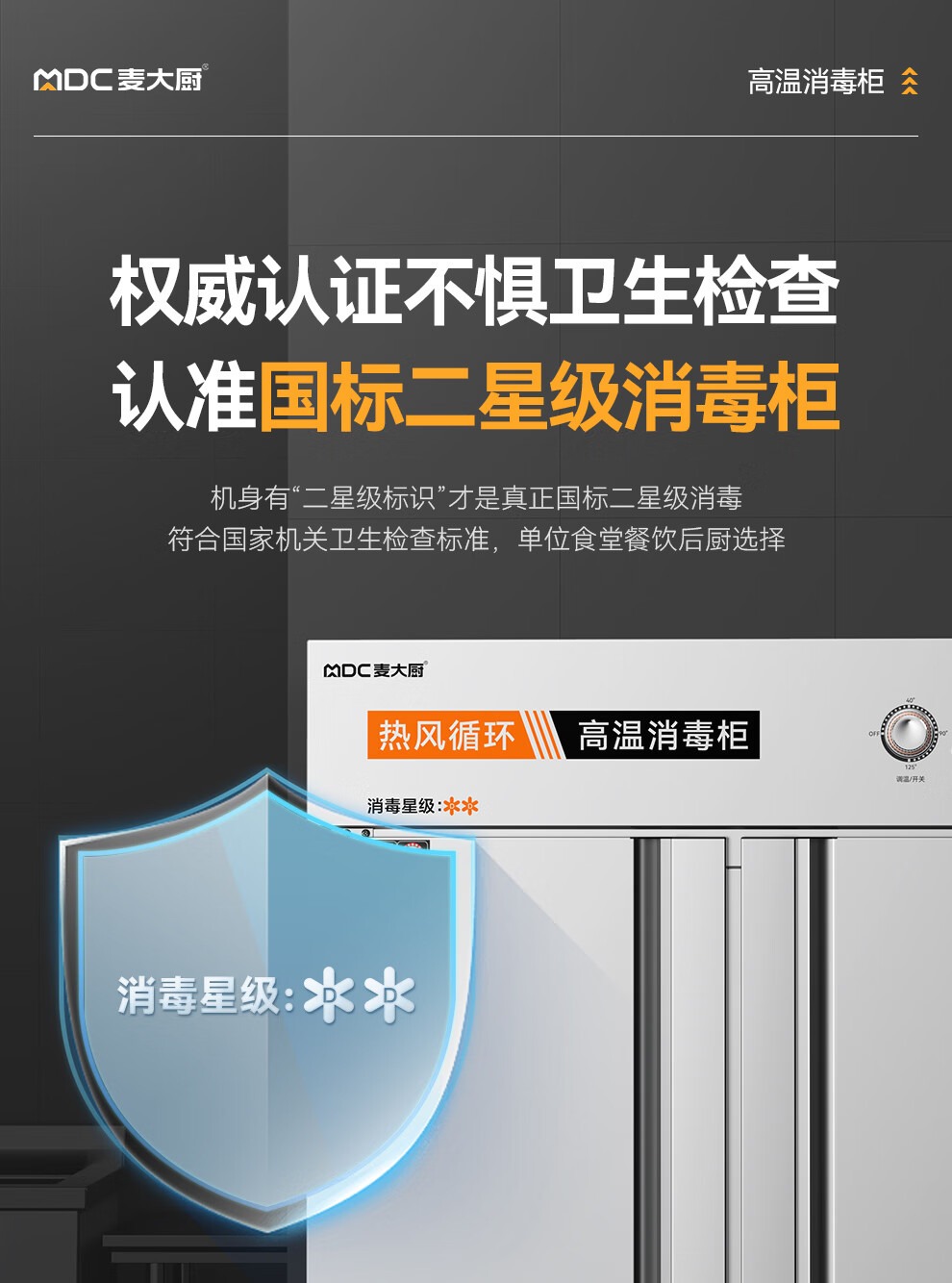 麦大厨经典旋钮款双门单控4层热风循环高温消毒柜1550W