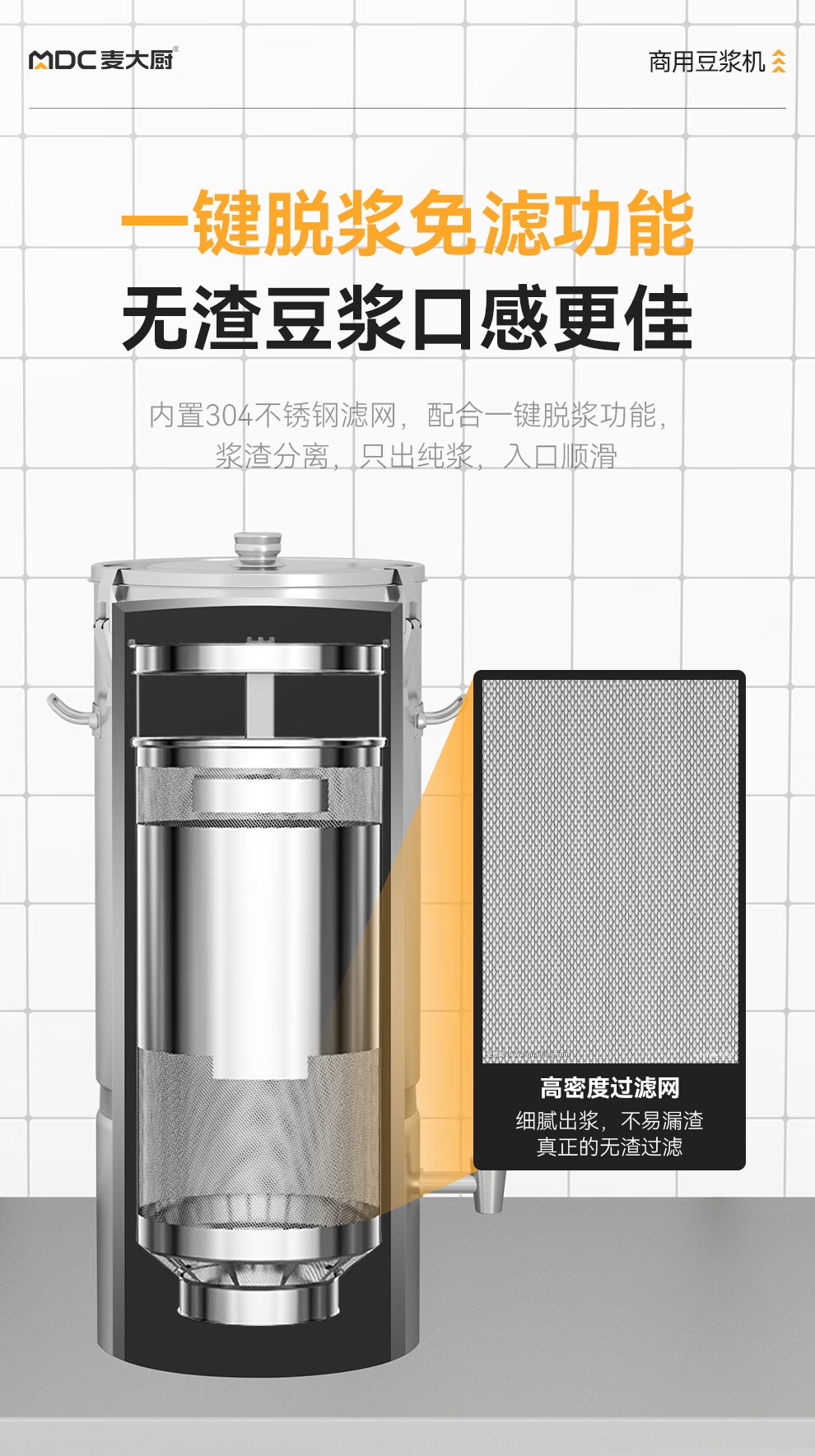 麦大厨商用豪华款单层豆浆机干湿两用磨煮一体机30L