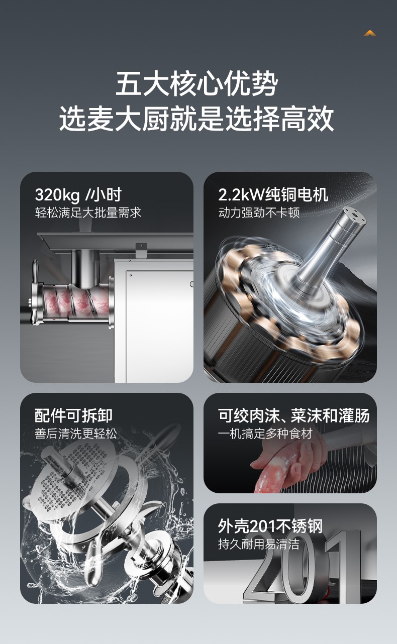 麦大厨2.2KW商用立式绞肉机多功能可脱卸灌肠机碎肉机