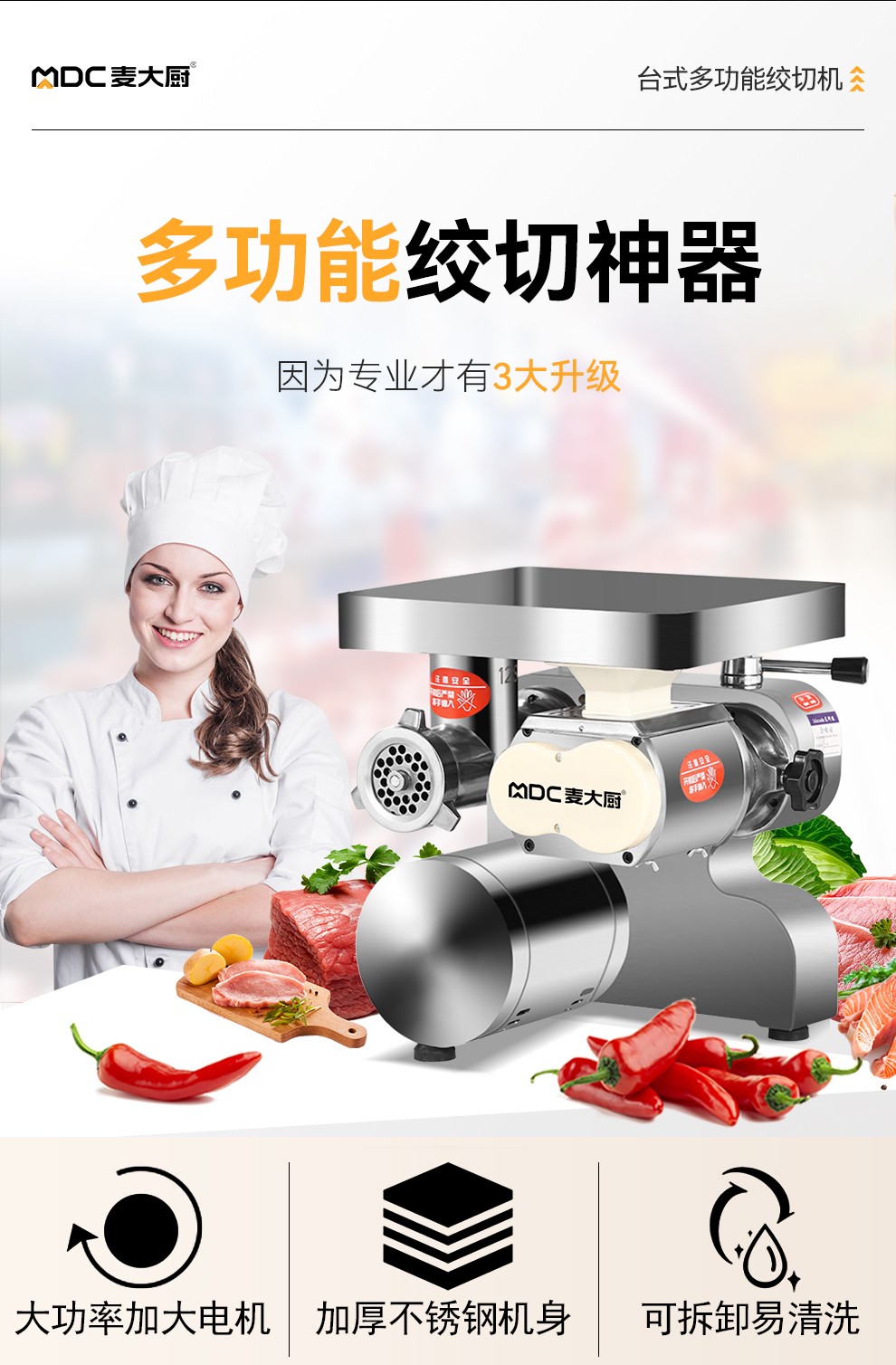 麦大厨1.8KW商用多功能可脱卸台式绞切肉机灌肠机碎肉机