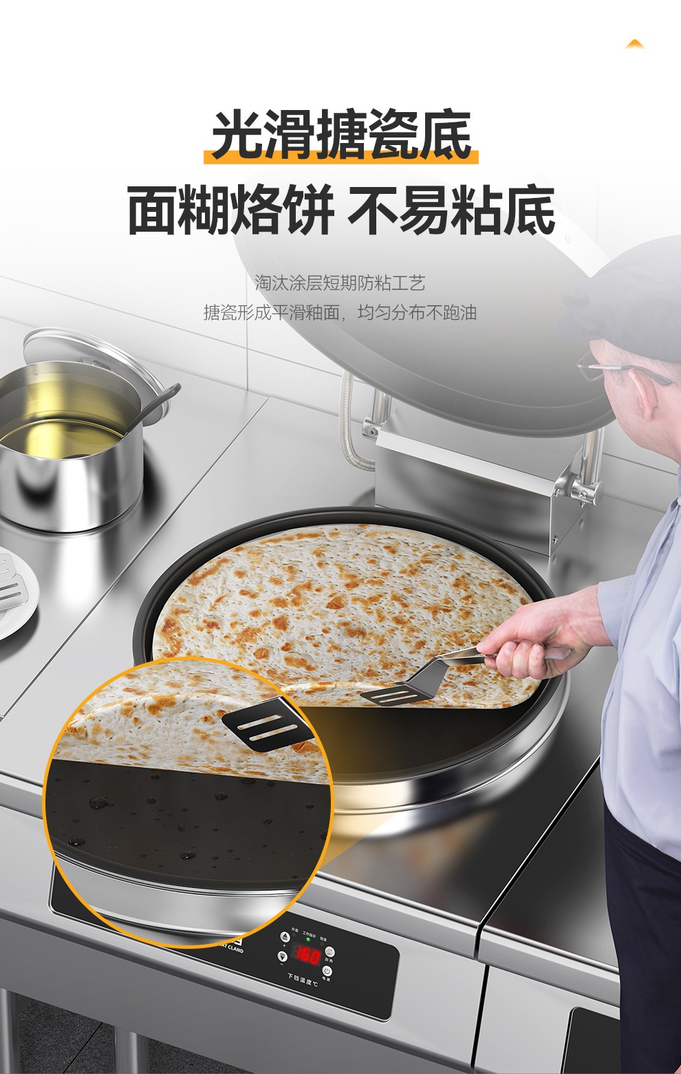 麦大厨380V大型食堂烙饼机数显升级款商用电饼铛铁锅3cm