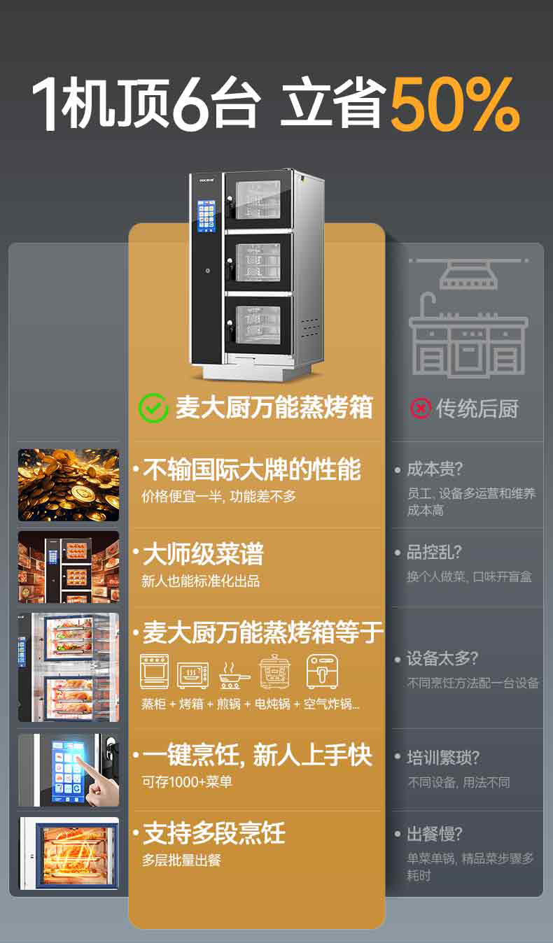 麦大厨ZKA19系列3柜组合触屏式商用万能蒸烤箱18.6kW