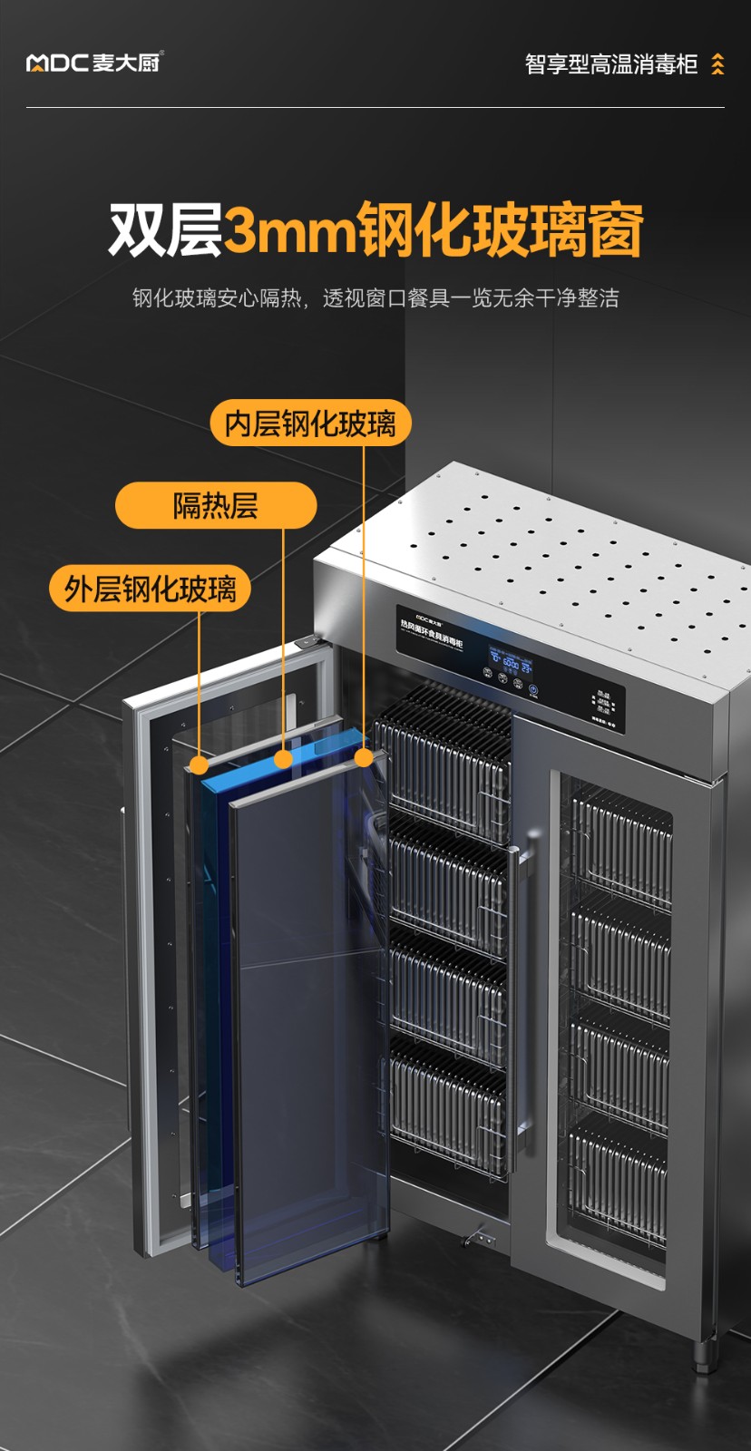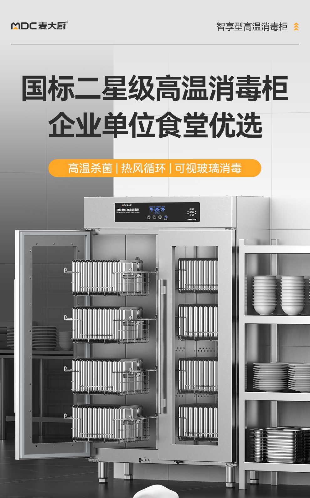 麦大厨智享型4层双门单控热风循环高温食具大透窗消毒柜
