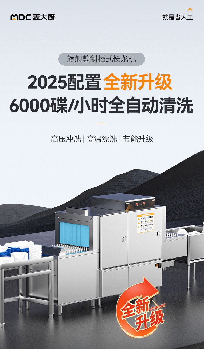 麦大厨旗舰款2.95m斜插式单缸单喷淋长龙式洗碗机