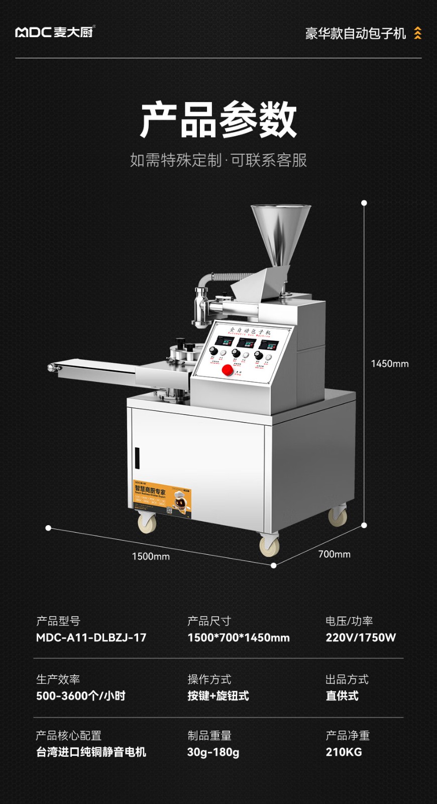 - 更多MDC商用包子机规格咨询在线客服