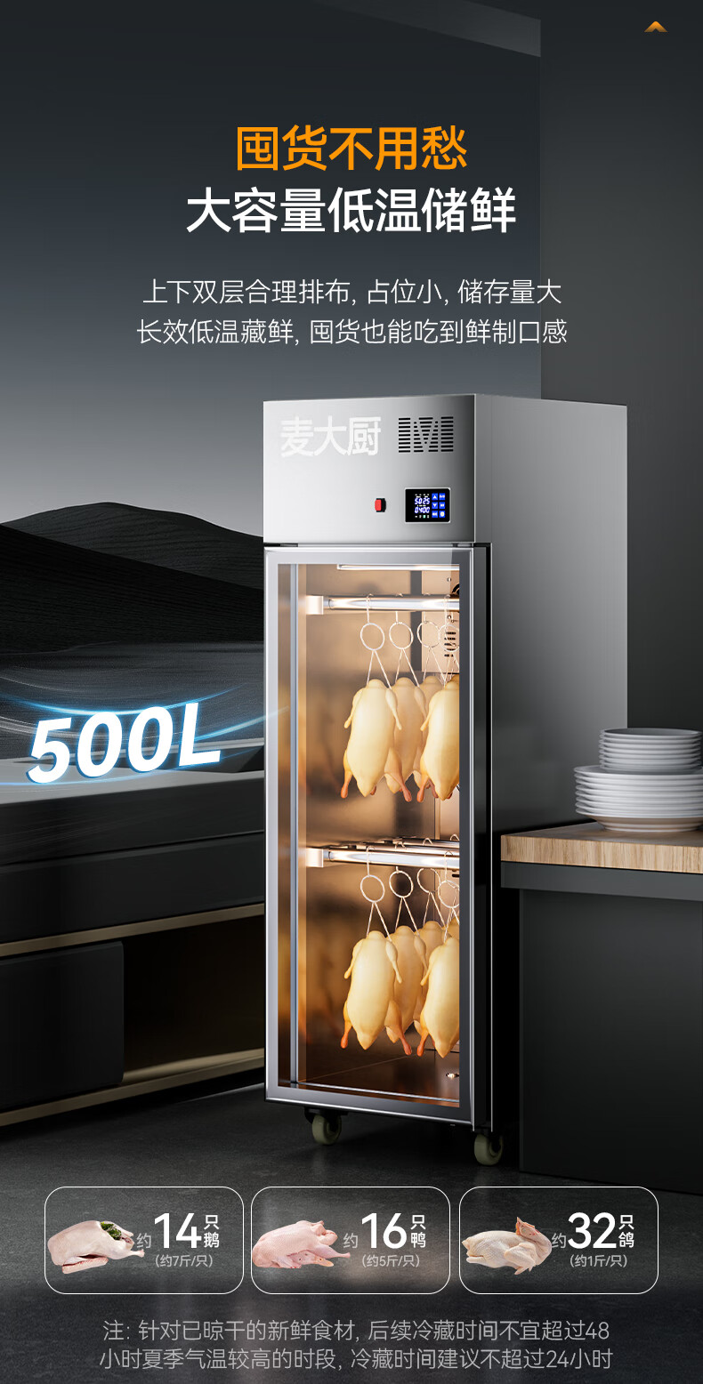 麦大厨商用晾胚柜节能至尊款880W单门烤鸭风干柜