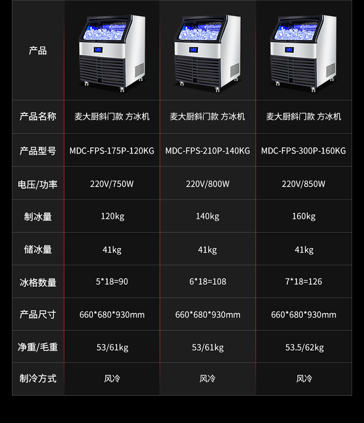 MDC商用制冰机斜门风冷款方冰机126冰格