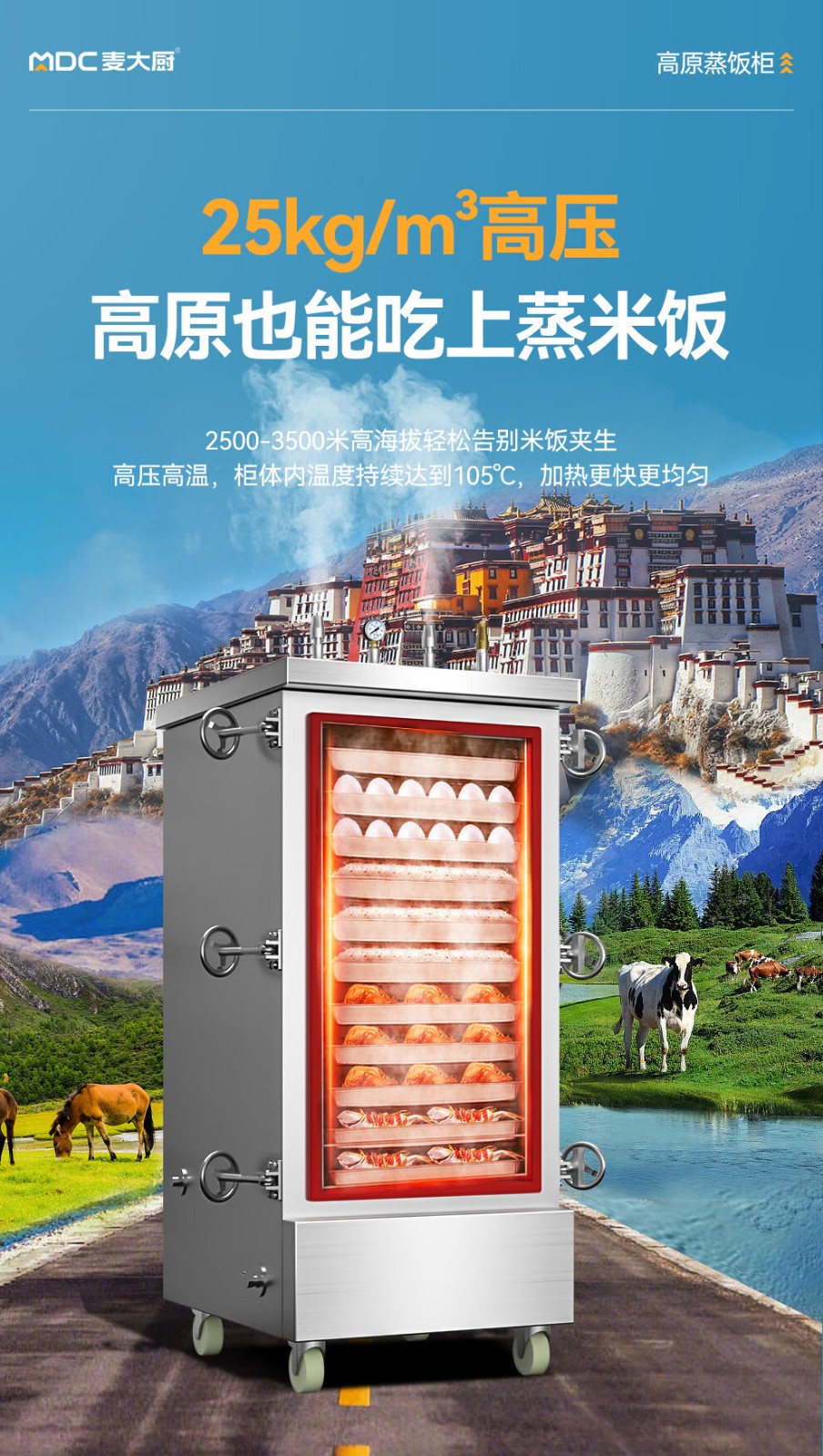 MDC商用高原蒸柜燃气款48盘双门蒸饭柜