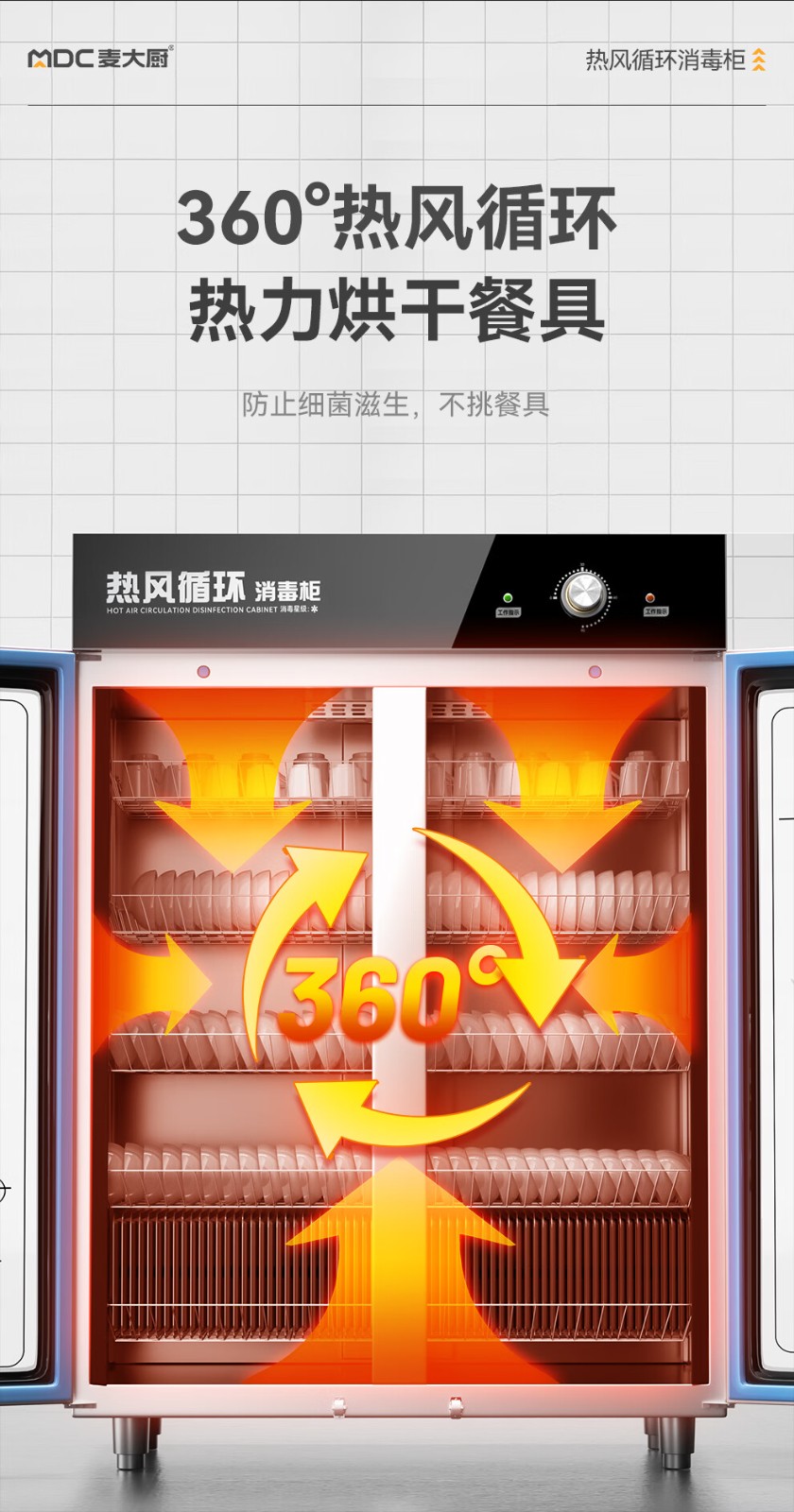 麦大厨旋钮款220V双门中温热风循环食具消毒柜1550W
