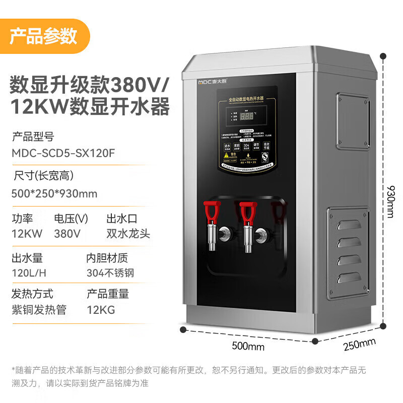 麦大厨黑钛钢数显升级款速热开水器商用120-210L