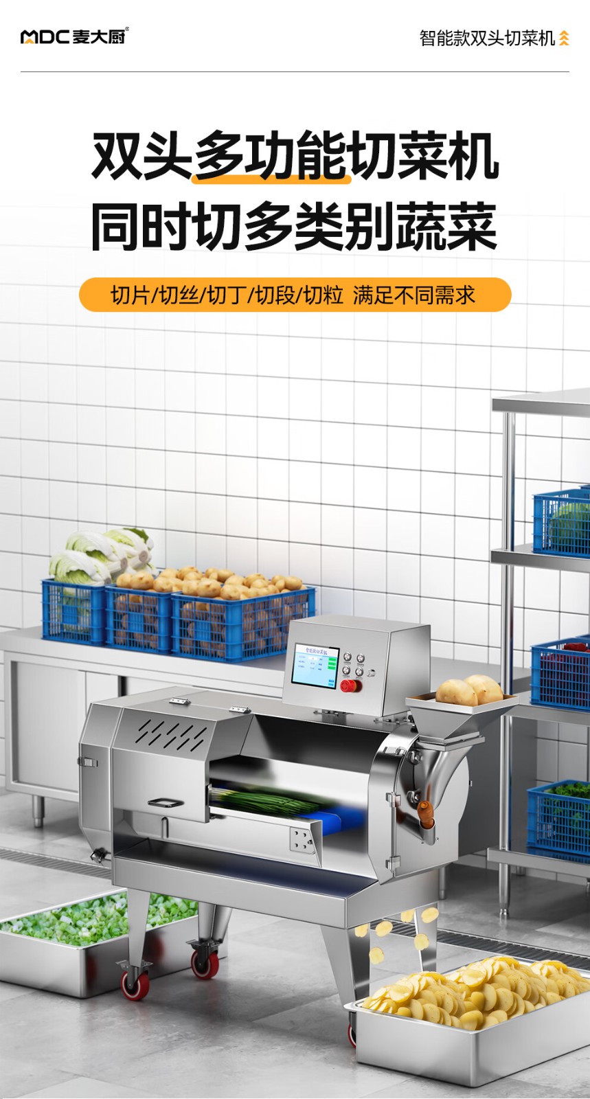 麦大厨商用切菜机多功能双头变频食堂厨房电动叶菜根茎切碎机