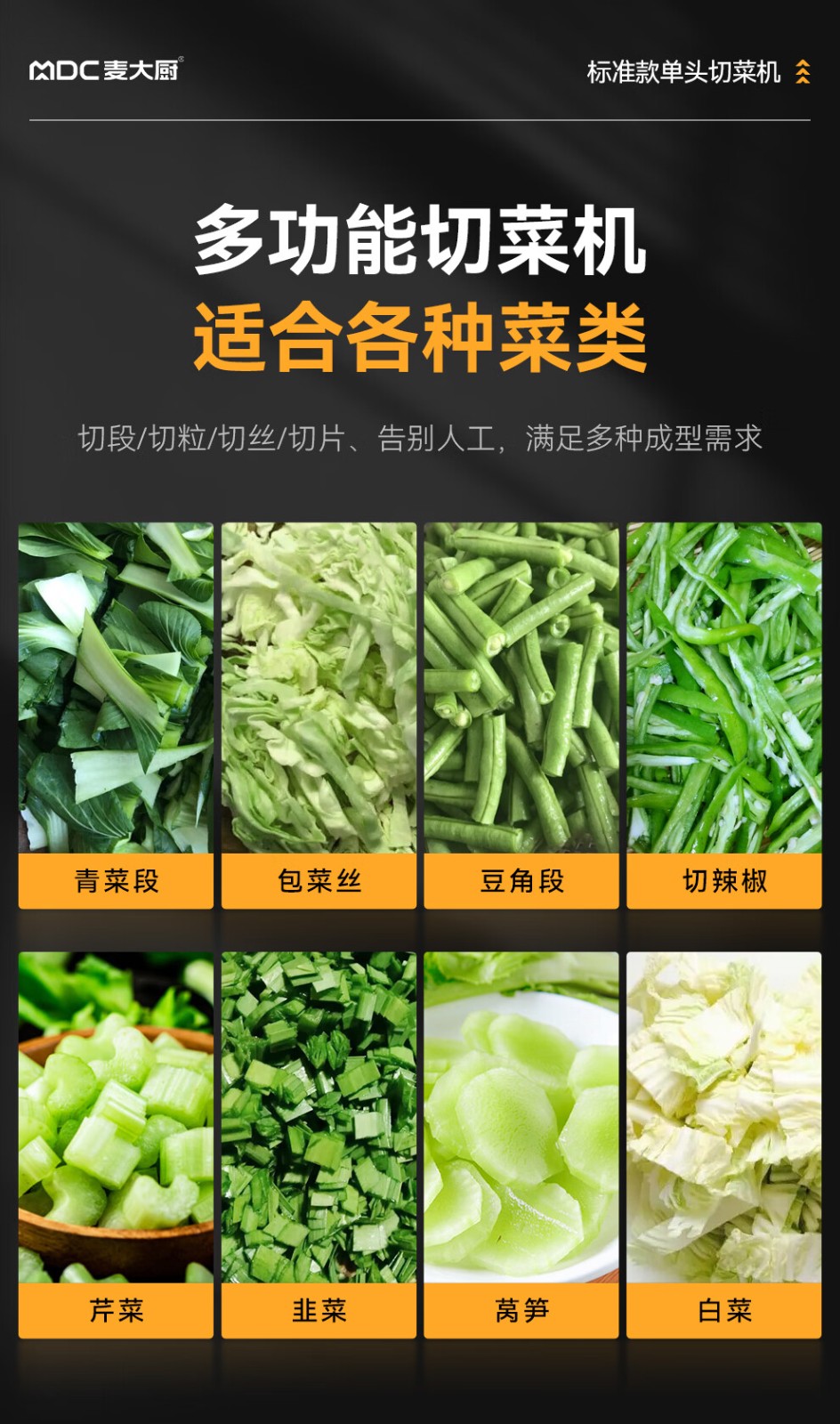 麦大厨标准款单头叶菜类切菜机商用厨房叶菜类切段切丁机