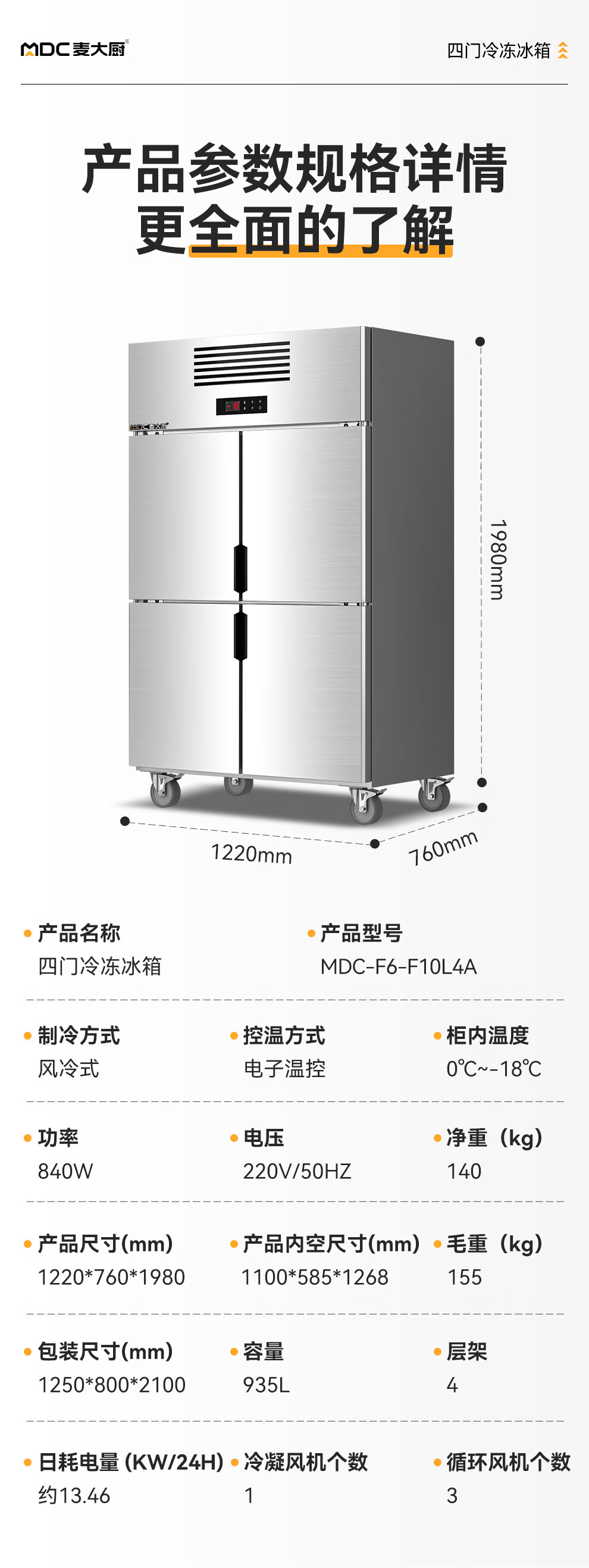 - 更多MDC商用四六门冰柜规格咨询在线客服