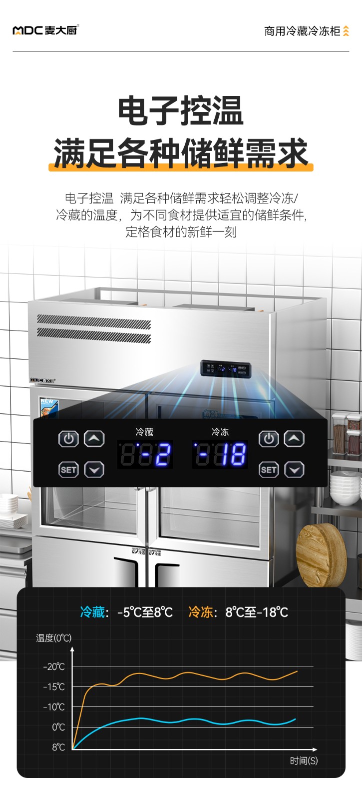 麦大厨标准款四门直冷上玻璃立式双温冰柜
