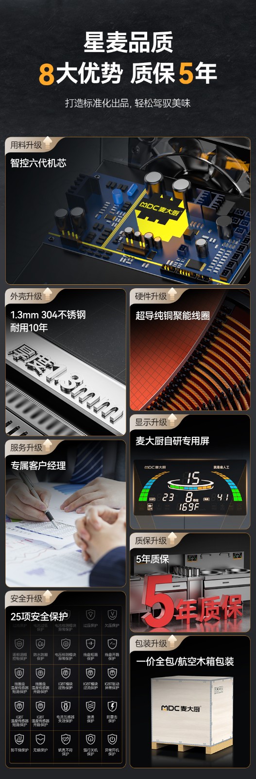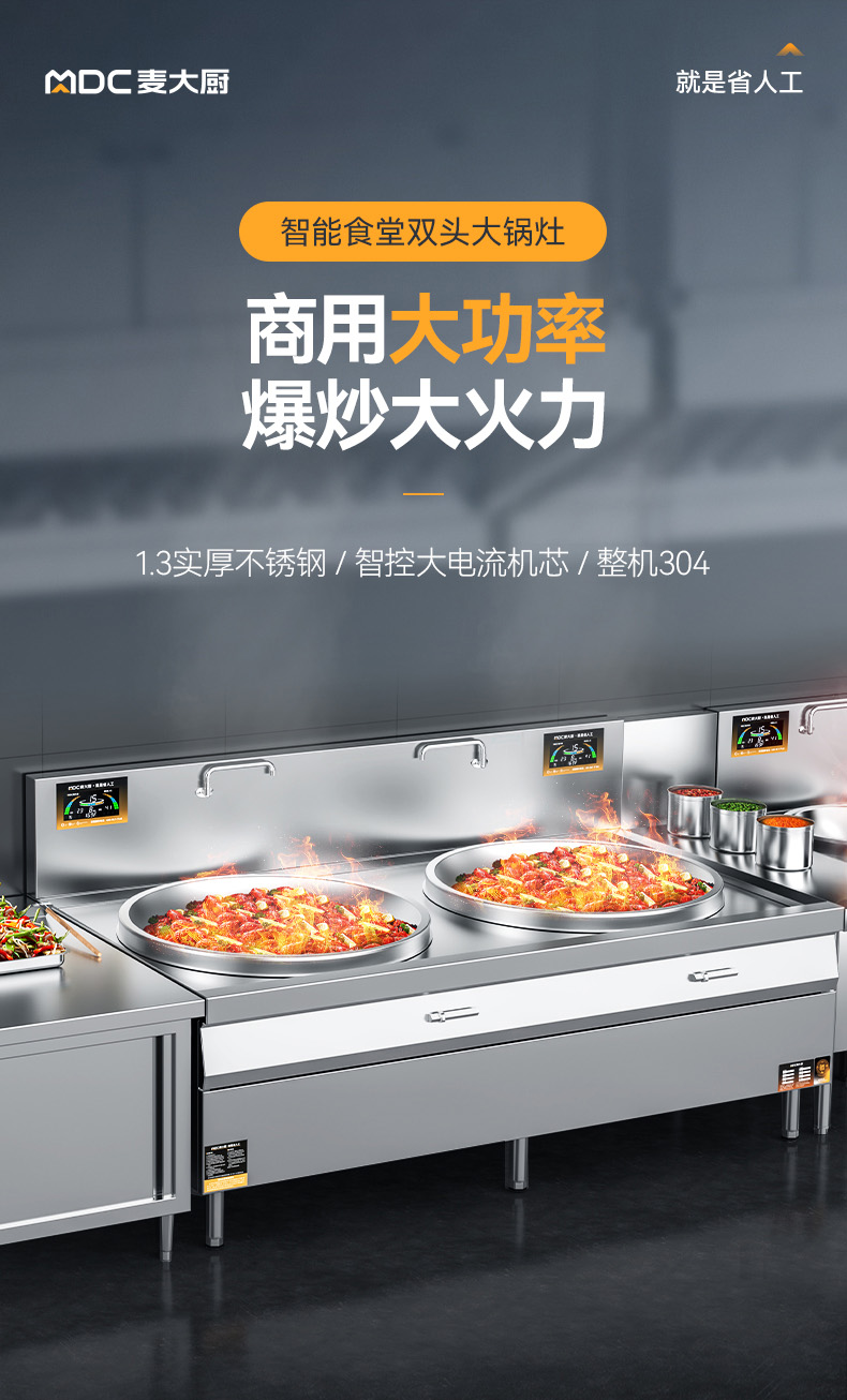 麦大厨星麦款304材质电磁大炒炉双头大锅灶1000