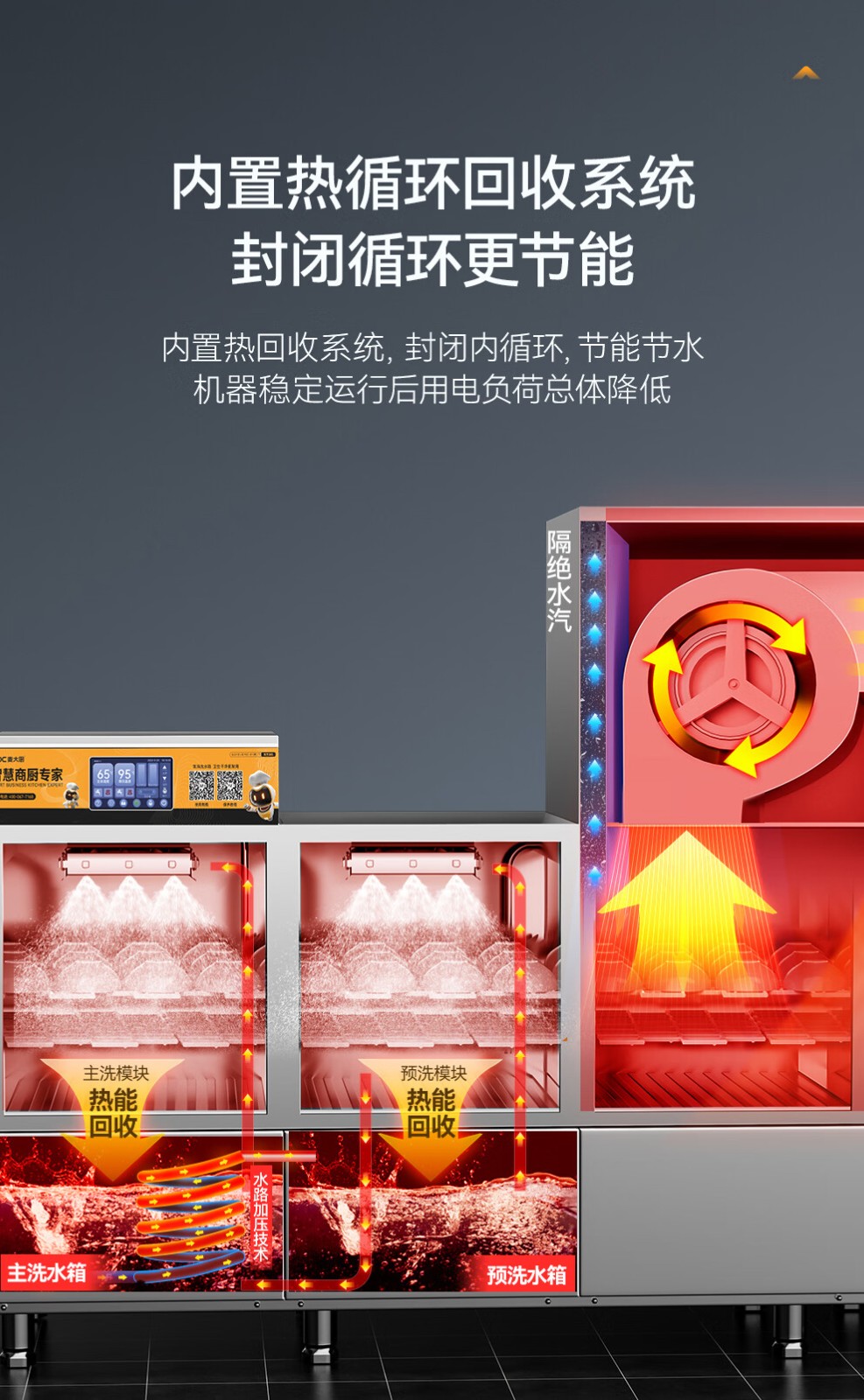 麦大厨金麦款平放式触屏热回收1.7m单缸单喷洗碗机