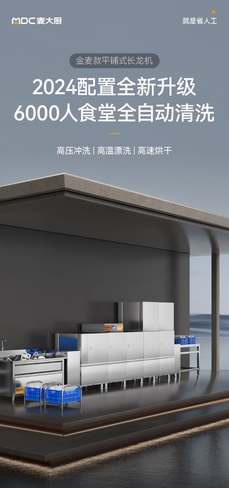 麦大厨金麦款平放式触屏热回收2.7m双缸单喷洗碗机