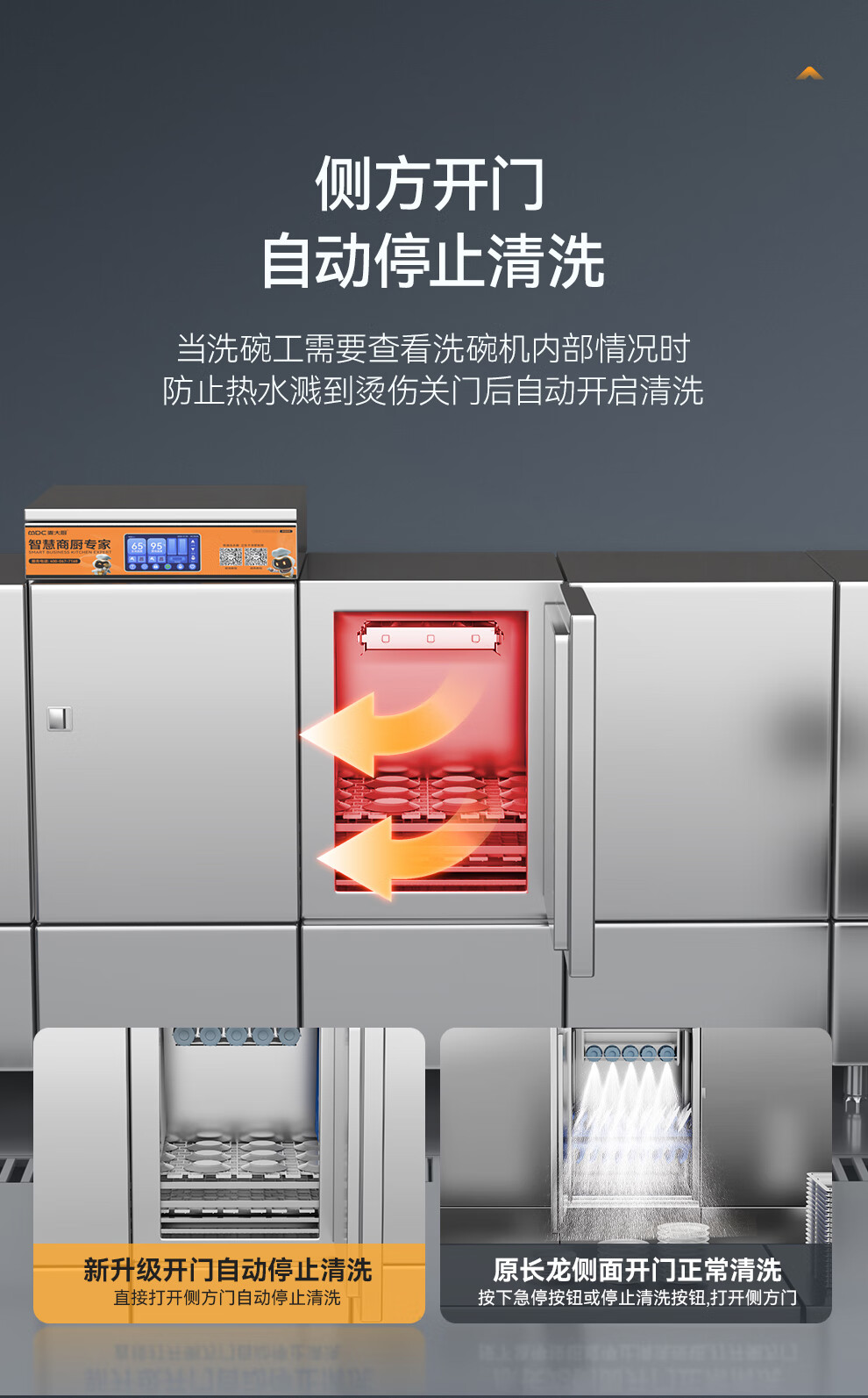 麦大厨金麦款平放式触屏热回收3.2m三缸双喷洗碗机