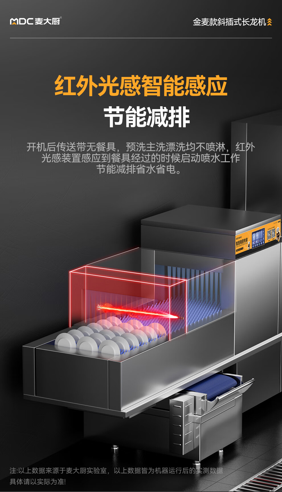 麦大厨金麦款斜插式触屏热回收3.75m三缸双喷洗碗机
