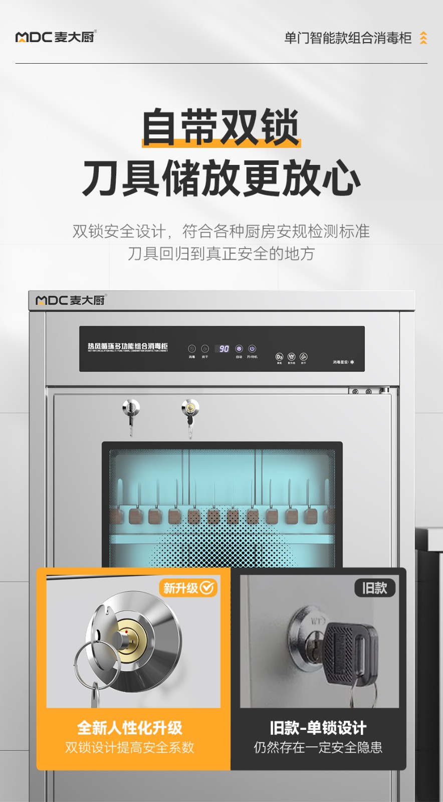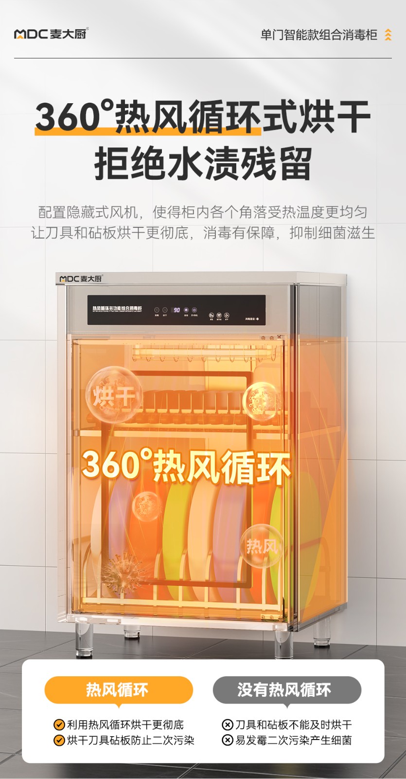 麦大厨智能款单门双层刀具砧板组合臭氧紫外线热风循环消毒柜
